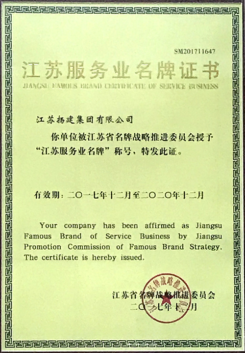 揚(yáng)建網(wǎng)訊 日前,集團(tuán)榮獲2017年度江蘇省名牌戰(zhàn)略推進(jìn)委員會(huì)“江蘇省名牌產(chǎn)品企業(yè)”稱(chēng)號(hào),是我集團(tuán)繼建筑產(chǎn)品獲評(píng)2017年江蘇省名牌產(chǎn)品后的又一省級(jí)名牌稱(chēng)號(hào)。