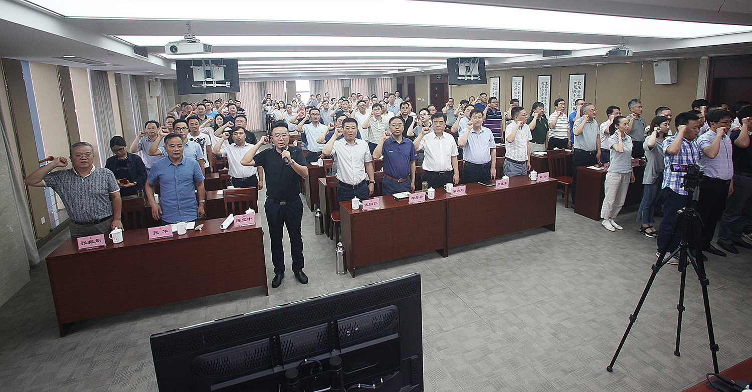 揚建網訊 為紀念中國共產黨成立97周年,結合集團2018年黨建工作總體要求,不斷增加黨組織的創(chuàng)造力、凝聚力和戰(zhàn)斗力,進一步推動集團各項改革發(fā)展工作 ,7月8日下午,集團黨委在揚州運河城市廣場B座14樓會議室舉辦了“不忘初心、牢記使命”主題教育活動。活動由黨委副書記張振新同志主持,集團在揚黨委委員、高管、總部及基層黨員干部共115人參加。