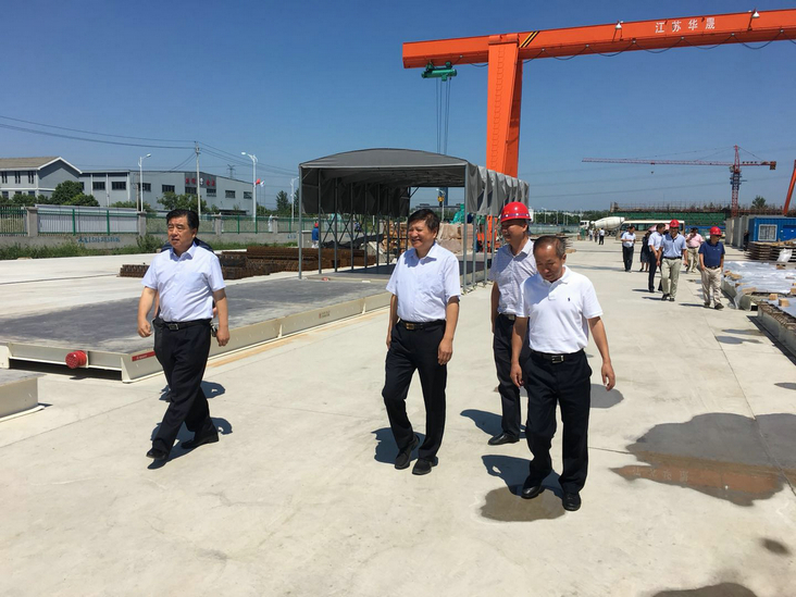 揚建網(wǎng)訊 為了解我市建筑產(chǎn)業(yè)化發(fā)展現(xiàn)狀和發(fā)展過程中存在的問題、促進建筑產(chǎn)業(yè)綠色發(fā)展、推動我市建筑業(yè)轉型升級,同時為市人大常委會聽取并審議我市建筑產(chǎn)業(yè)化發(fā)展情況提供客觀實際的參考意見,8月24日上午,市人大常委會副主任楊正福、副秘書長吳效安等一行8人,來到江蘇華晟新型建筑科技有限公司視察調(diào)研。華晟公司董事長梁云彪、總經(jīng)理季學軍等陪同調(diào)研。