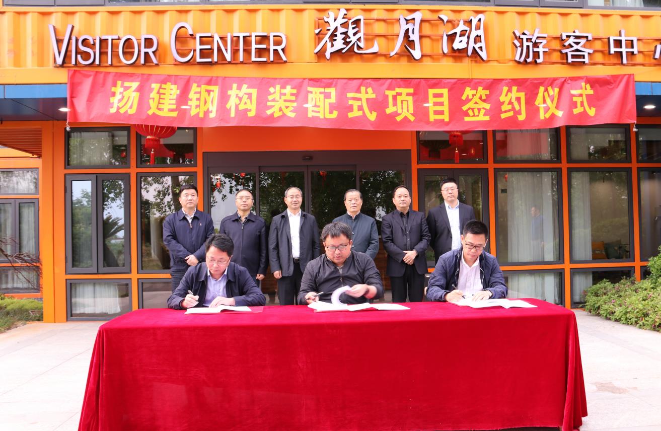 揚(yáng)建網(wǎng)訊 5月6日,集團(tuán)鋼構(gòu)裝配式項(xiàng)目簽約儀式在揚(yáng)建現(xiàn)代農(nóng)業(yè)園舉行。集團(tuán)董事長曹德榮、總經(jīng)理鄒厚存、副總經(jīng)理兼總會計(jì)師陳滸、鋼結(jié)構(gòu)分公司經(jīng)理王嶸、華晟公司經(jīng)理季學(xué)軍、儀征經(jīng)濟(jì)開發(fā)區(qū)管委會主任劉長榮、副書記楊恩鵬、副主任華鵬等領(lǐng)導(dǎo)參與或見證了簽約。