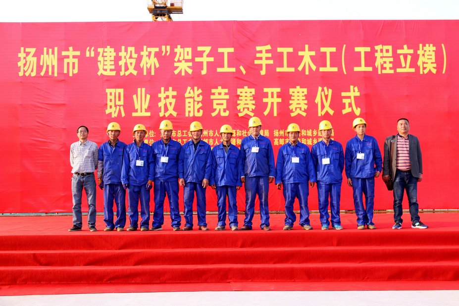 揚建網(wǎng)訊 10月31日,由揚州市總工會、人社局、住建局聯(lián)合主辦,高郵市總工會、人社局、住建局承辦,高郵市建設(shè)投資發(fā)展集團有限公司協(xié)辦的揚州市“建投杯”架子工、手工木工(工程立模)職業(yè)技能競賽在高郵市潤豐苑項目部工地隆重舉辦。