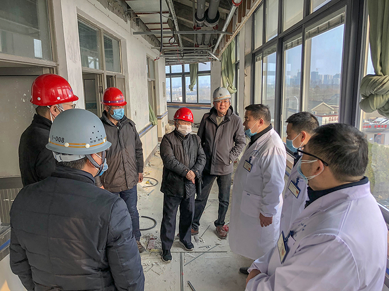 1月27日(正月初三)下午,揚(yáng)州市市長張寶娟來到市三院,現(xiàn)場調(diào)研新型冠狀病毒感染的肺炎疫情防控工作;市衛(wèi)健委主任趙國祥、建工控股董事長王宏、揚(yáng)建集團(tuán)總經(jīng)理鄒厚存等相關(guān)領(lǐng)導(dǎo)陪同,并匯報(bào)了關(guān)于新建100間箱式板房工程施工方案和進(jìn)度計(jì)劃。由于時(shí)間急如星火,為確保及時(shí)投入使用,經(jīng)揚(yáng)州市委最終決定,取消原100間板房的建設(shè)計(jì)劃,改為將原醫(yī)院4#樓改造為治療醫(yī)生和護(hù)士的隔離生活區(qū)。該病房改造項(xiàng)目為5層,總面積約6000㎡,1~3層要求正月十五完成,4層要求正月二十結(jié)束。具體由揚(yáng)建集團(tuán)華發(fā)公司負(fù)責(zé)設(shè)計(jì)并牽頭施工。華發(fā)公司設(shè)計(jì)經(jīng)理薛愛遐參與制定了設(shè)計(jì)方案。
