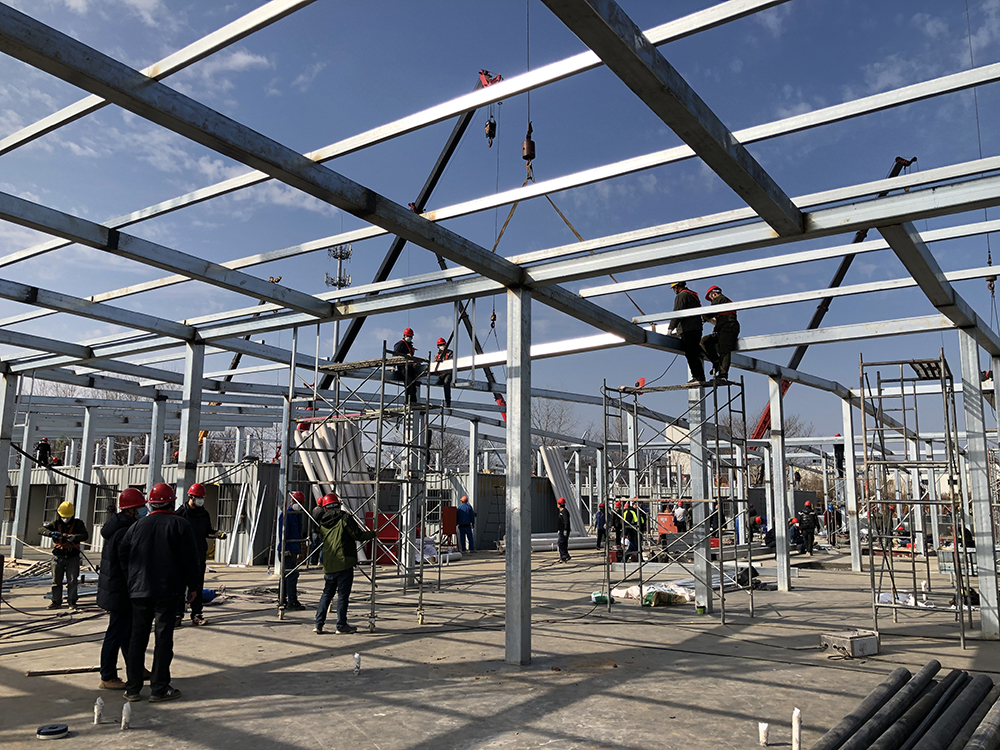 薛炳寬副局長一行深入現(xiàn)場實(shí)地察看了病區(qū)的施工進(jìn)展情況后,在項(xiàng)目部會(huì)議室就項(xiàng)目施工的相關(guān)工作做了進(jìn)一步了解。我集團(tuán)總經(jīng)理鄒厚存向薛炳寬副局長一行匯報(bào)了病區(qū)的建設(shè)進(jìn)度和生產(chǎn)情況,并就施工管理過程中的重點(diǎn)、遇到的難點(diǎn)及具體解決方案做了介紹。鄒總還就項(xiàng)目部成立揚(yáng)建抗疫防控突擊隊(duì)、項(xiàng)目部臨時(shí)黨支部和臨時(shí)工會(huì)委員會(huì)等相關(guān)工作做了匯報(bào)。