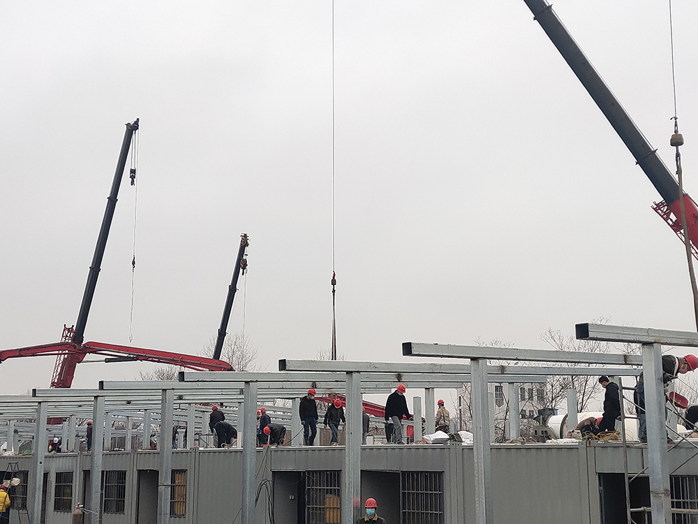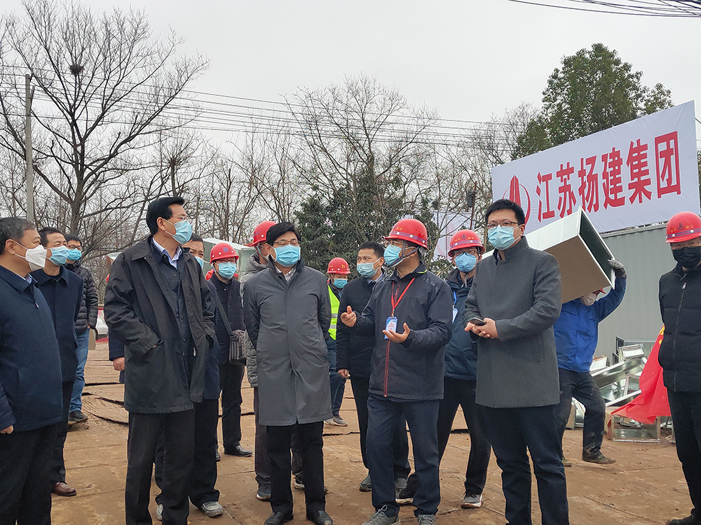 在充分了解情況后,何金發(fā)副市長現(xiàn)場聯(lián)系了江都區(qū)相關(guān)領(lǐng)導(dǎo),要求江都市委市政府在做好各項(xiàng)防護(hù)措施的基礎(chǔ)上動(dòng)員相關(guān)企業(yè)開足馬力,集中力量支持病區(qū)的生產(chǎn)建設(shè)。在深入考察了現(xiàn)場的建設(shè)情況后,何市長和束院長對我集團(tuán)的現(xiàn)場管理情況表示滿意,尤其對病區(qū)的分區(qū)明確,系統(tǒng)清晰,流程規(guī)范提出了表揚(yáng)。