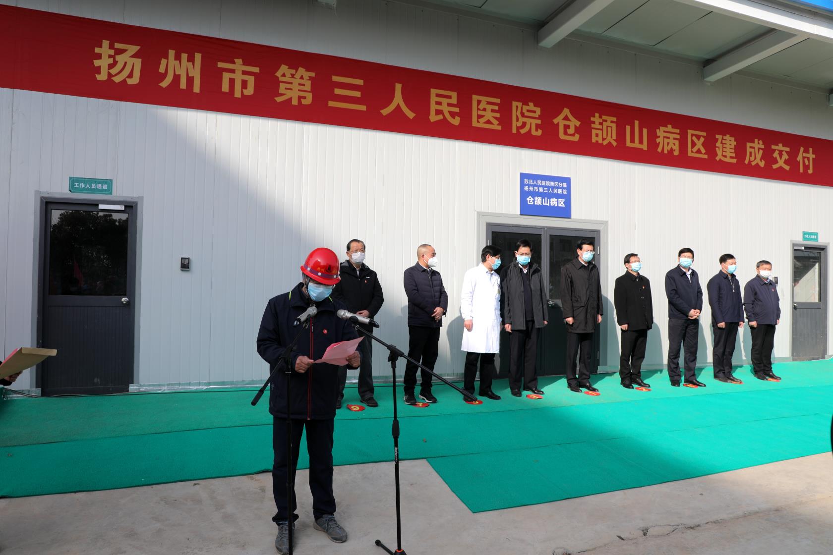 隨后,揚(yáng)州建工控股公司王宏董事長指出,揚(yáng)建集團(tuán)始終堅(jiān)持高標(biāo)準(zhǔn)、高質(zhì)量、高速度,再一次印證了鐵軍速度、揚(yáng)州效率。贊許一線建設(shè)者是英勇無畏的戰(zhàn)士,是掌握了疫情反擊戰(zhàn)的主動(dòng)權(quán)的決勝因素。