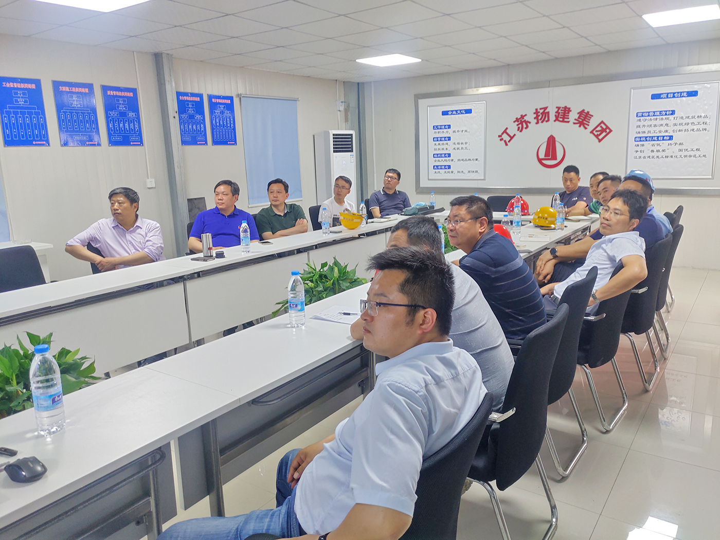 揚(yáng)建網(wǎng)訊 5月26日下午,市住建局副局長(zhǎng)朱兆權(quán)、市建筑安全監(jiān)督站副站長(zhǎng)周欣一行到揚(yáng)州軟件園一期南區(qū)項(xiàng)目檢查指導(dǎo),集團(tuán)安全監(jiān)督部副部長(zhǎng)馮志宏、一公司總工王建鋒等領(lǐng)導(dǎo)陪同。