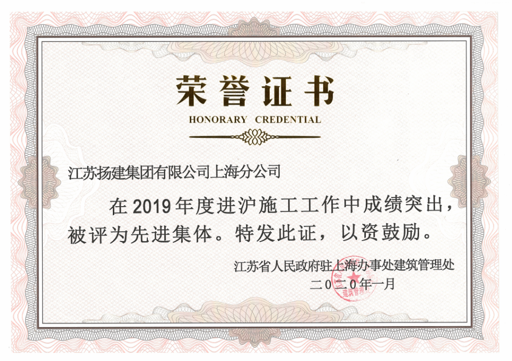 揚建網(wǎng)訊 日前,江蘇省政府駐滬辦交流總結(jié)會在上海召開。會議對2019年度江蘇省進滬施工先進企業(yè)和個人進行了通報表揚。其中,四公司獲評2019年度進滬施工優(yōu)秀先進集體;張斌同志獲評2019年度進滬施工先進個人;李金邦同志獲評2019年度進滬施工優(yōu)秀建造師。