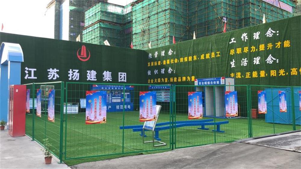 根據(jù)分公司要求,匯鴻·景云項(xiàng)目在安全文明標(biāo)準(zhǔn)化建設(shè)上必須亮點(diǎn)突出,利用市區(qū)核心地段做好企業(yè)宣傳工作。項(xiàng)目部利用有限的場地條件,設(shè)置安全體驗(yàn)區(qū)。在揚(yáng)塵控制方面,改造提升沖洗平臺(tái),主干道設(shè)置高壓噴霧,灑水車定人定崗。在消防安全方面,臨近加油站一側(cè),采用密目沖孔鋼板網(wǎng)與扣件式腳手架相結(jié)合的創(chuàng)新技術(shù),得到業(yè)主和主管部門領(lǐng)導(dǎo)的認(rèn)可。
