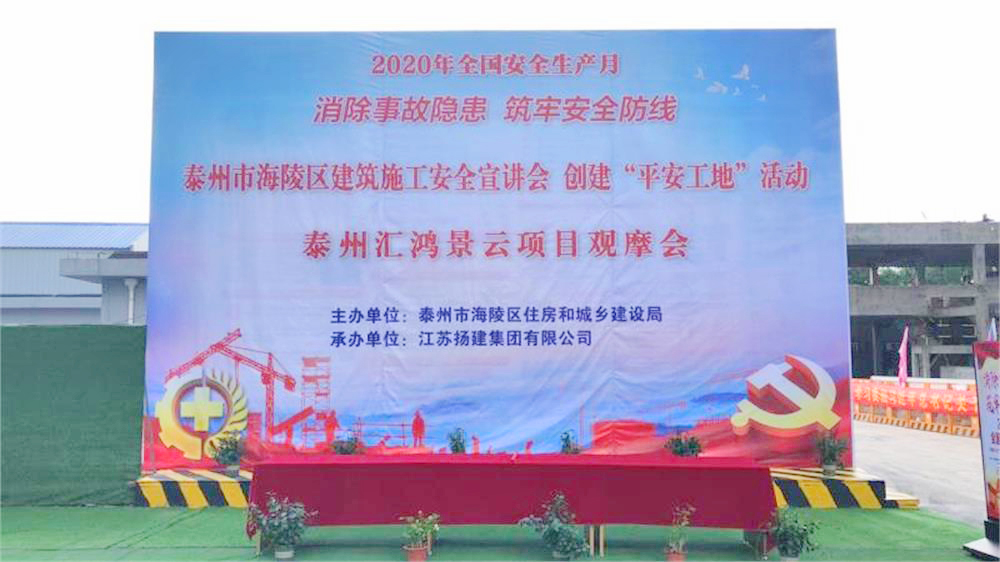 揚(yáng)建網(wǎng)訊 6月19日上午,由泰州市海陵區(qū)住建局組織的海陵區(qū)2020年度安全生產(chǎn)月主題活動(dòng)“建筑施工安全宣講會(huì)、創(chuàng)建平安工地”觀摩會(huì)在我集團(tuán)總承包的匯鴻·景云花園二標(biāo)段項(xiàng)目舉行。海陵區(qū)住建局、安監(jiān)站、施工企業(yè)代表約60人參加觀摩活動(dòng)。