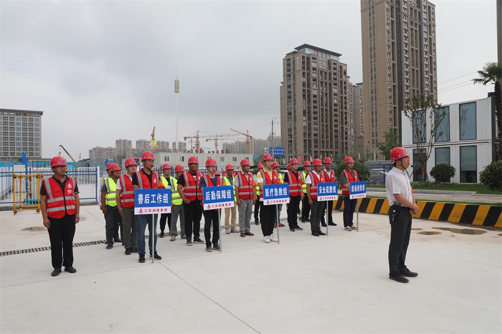 揚建網(wǎng)訊 為認(rèn)真貫徹落實習(xí)近平總書記的一系列重要講話精神,健全安全生產(chǎn)責(zé)任落實,檢驗重點項目在建工程應(yīng)急救援預(yù)案的可行性和操作性,提高員工的安全意識以及在緊急情況下的應(yīng)變和自救能力,6月24日上午,揚州頤和醫(yī)療健康中心項目組織開展安全事故應(yīng)急救援演練,項目部全員參與應(yīng)急演練。城控集團、城建置業(yè)以及我集團公司領(lǐng)導(dǎo)現(xiàn)場觀摩。