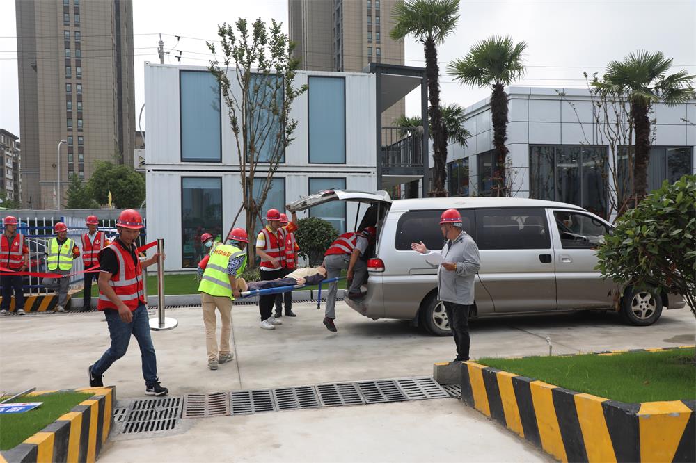 本次演練模擬兩種事故場景,分別為物體打擊事故和卸料平臺坍塌事故,事故均導(dǎo)致一名員工受傷?,F(xiàn)場人員發(fā)現(xiàn)情況后,立即用根據(jù)流程逐級進(jìn)行匯報,項目部迅速啟動了應(yīng)急處置程序。各隊組按照應(yīng)急預(yù)案要求組織現(xiàn)場救援,第一時間組織撤離附近職工群眾至安全區(qū)域?qū)嵤┈F(xiàn)場自救,并封閉現(xiàn)場,在危險區(qū)域周邊設(shè)置警戒區(qū)。醫(yī)療搶險人員則攜帶專用工具和簡易醫(yī)療設(shè)備進(jìn)行現(xiàn)場搶修。醫(yī)療部門在得到通知后,組織人員趕赴現(xiàn)場,進(jìn)行專業(yè)救護處置,并將受傷人員轉(zhuǎn)送至醫(yī)院進(jìn)行救治。
