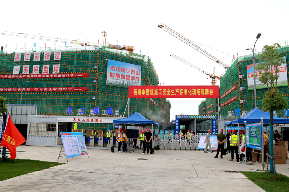 揚建網(wǎng)訊 6月29日下午,市住房和城鄉(xiāng)建設(shè)局在集團與邗建集團共同承建的揚州軟件園項目舉行2020年揚州市建筑施工安全生產(chǎn)標準化現(xiàn)場觀摩會。省建筑安全監(jiān)督總站站長王佳強、市住建局局長陶伯龍、副局長薛炳寬、市建工控股董事長王宏、我集團總經(jīng)理鄒厚存、副總經(jīng)理丁傳武及來自全市各縣區(qū)建設(shè)安全監(jiān)管部門,建筑企業(yè)共300余位代表等出席活動。
