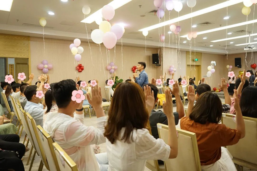 活動(dòng)現(xiàn)場(chǎng)氣氛熱烈,歡聲笑語(yǔ)不斷。第一個(gè)環(huán)節(jié)“相遇”拉開序幕,伴隨著浪漫的音樂(lè),男女嘉賓按隨機(jī)分配的號(hào)碼牌在茫茫人海中找到了同桌的你;第二個(gè)環(huán)節(jié)“攜手”埋下伏筆,一系列拓展小游戲,放松了心情,打開了心扉,拉近了距離,增進(jìn)了了解,為后續(xù)嘉賓們更深入的交流打下了良好的基礎(chǔ);第三個(gè)環(huán)節(jié)“牽手”一波N折,富有創(chuàng)意又趣味十足的自我介紹,將現(xiàn)場(chǎng)的氣氛推向了另一個(gè)高潮;第四個(gè)環(huán)節(jié)“美滿”落下帷幕,游戲過(guò)后,進(jìn)入到了自由交流環(huán)節(jié),現(xiàn)場(chǎng)既有中心紅娘志愿者為嘉賓們提供婚戀咨詢,又有中心工作人員以客服角色開展一對(duì)一服務(wù)。幾輪環(huán)節(jié)過(guò)后,現(xiàn)場(chǎng)不少男女嘉賓有了心儀的對(duì)象并且交換了聯(lián)系方式。