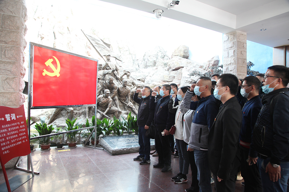 進入茅山新四軍紀念館后,黨總支副書記李浩煒首先帶領(lǐng)所有黨員重溫了入黨誓詞。