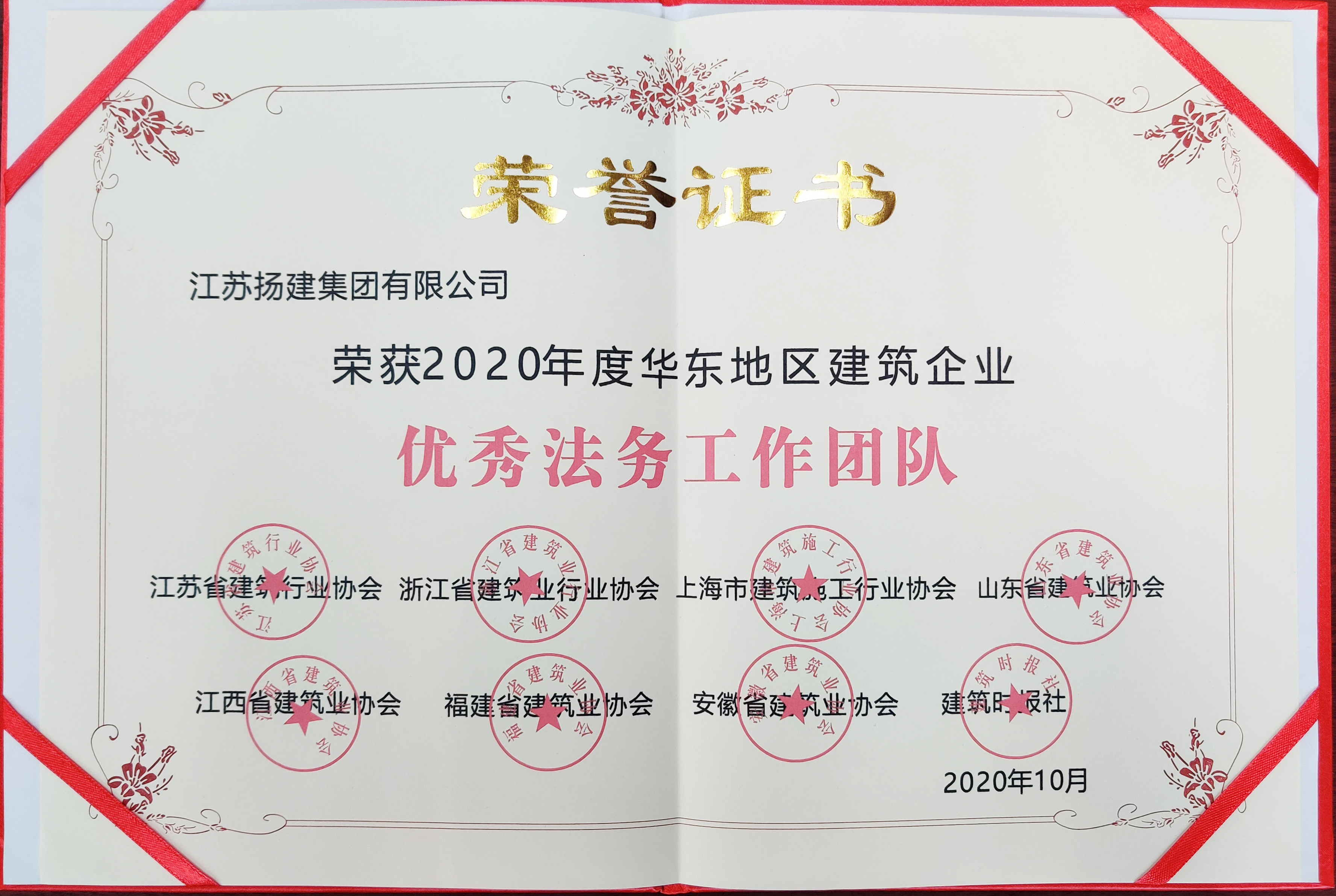 集團(tuán)法務(wù)部榮膺華東建筑企業(yè)法務(wù)工作優(yōu)秀團(tuán)隊(duì)