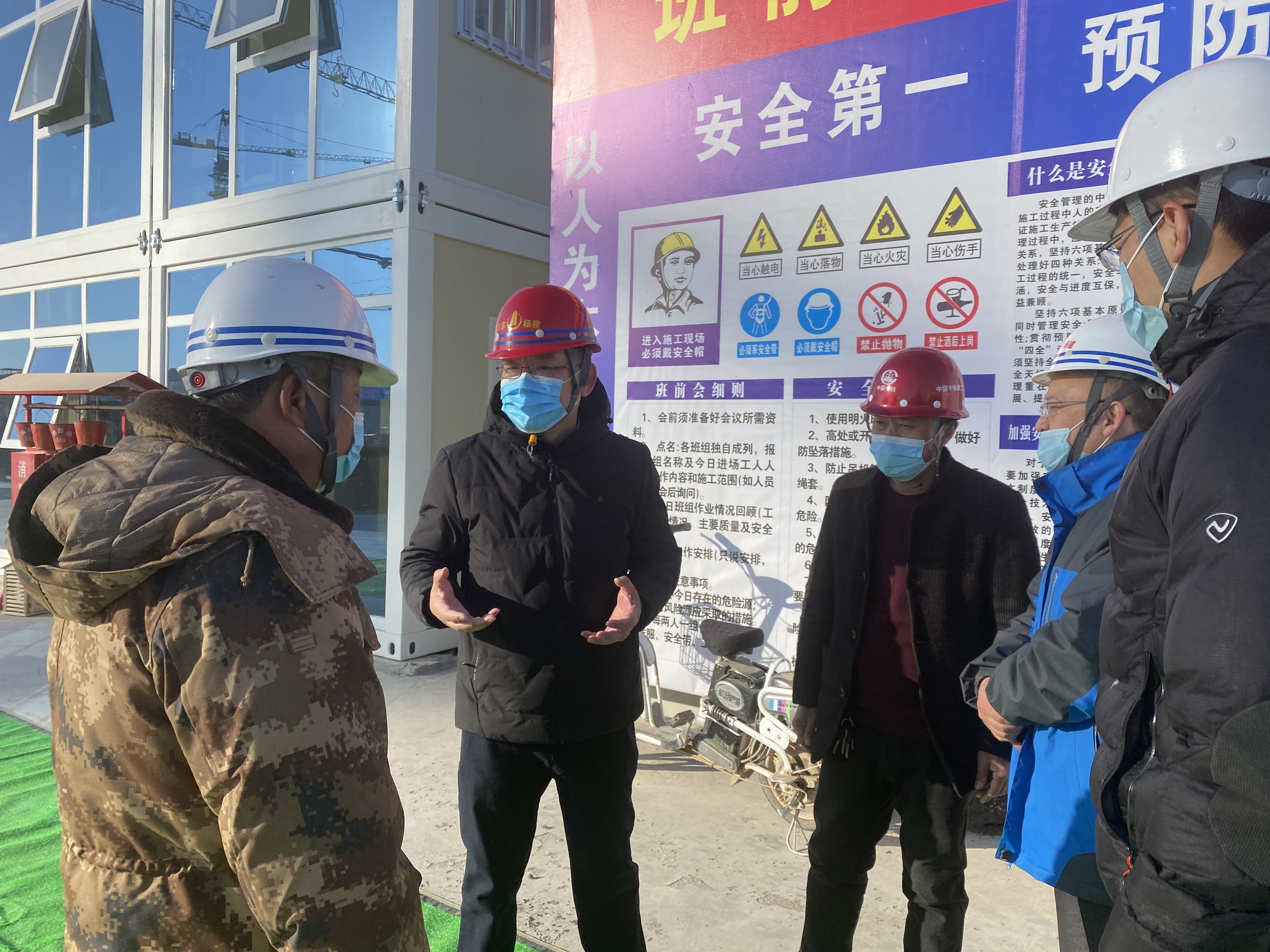在慰問期間,許世明總經(jīng)理詳細詢問了一線施工人員的生活情況并贊揚了大家辛勤工作、努力奮斗的拼搏精神。他還叮囑大家要注意防寒保暖、時刻牢固樹立安全意識,確保安全生產(chǎn)和身體健康,在保證施工生產(chǎn)進度的同時,安全度過一個健康、溫暖的冬季,并提前祝福大家新春快樂。隨后,他在工作指導中指出:臨近春節(jié),項目各崗位人員要做好各自工作,做好疫情防控工作、抓好安全生產(chǎn)、抓好技術(shù)質(zhì)量、做好冬季防火工作、抓好冬季施工。許世明總經(jīng)理強調(diào),要高度重視疫情防控工作,要加強對項目全體人員的健康教育,引導堅持科學佩戴口罩、保持社交距離、勤洗手等良好習慣。在針對農(nóng)民工返鄉(xiāng)問題上,要積極向農(nóng)民工發(fā)放醫(yī)療防護用品、開展健康體檢,幫助農(nóng)民工有序安全返鄉(xiāng)。