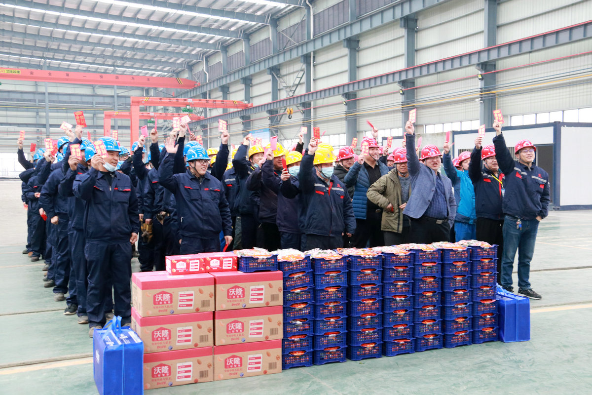 活動現(xiàn)場,在鋼構(gòu)公司經(jīng)理王嶸的陪同下,曹德榮董事長一行深入車間,了解鋼構(gòu)公司生產(chǎn)經(jīng)營狀況、職工勞動保護情況等。曹董事長與留守崗位非揚州籍員工親切交談,對他們響應(yīng)國家號召,自愿留揚過年、減少人員流動帶來疫情傳播風(fēng)險的行為表示高度贊揚,對堅守在揚的建設(shè)者們表示慰問。曹董事長此次一行還給留揚員工送上了慰問金和慰問品,表達了集團對他們的關(guān)懷,祝福他們在揚州過一個愉快祥和的春節(jié)。