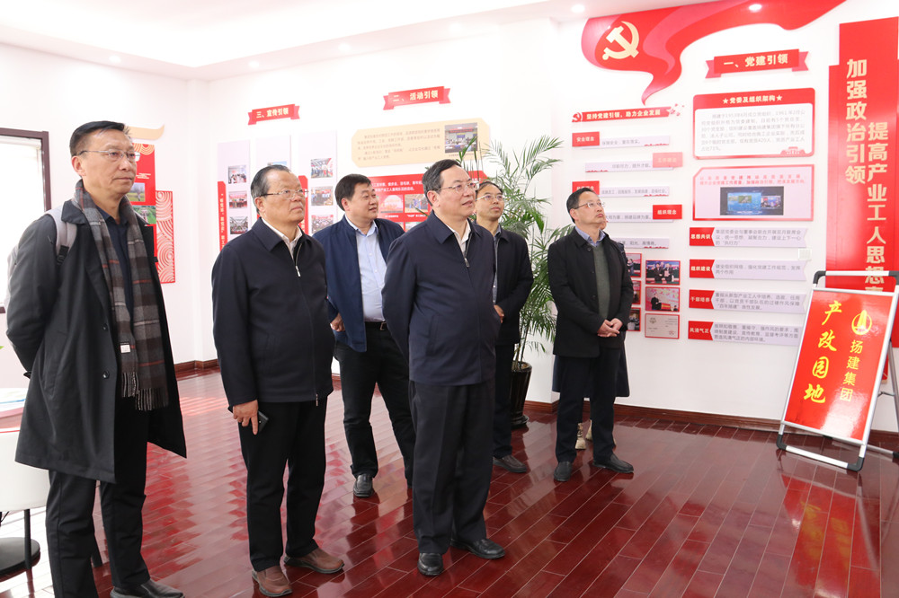 會(huì)議開(kāi)始前,雙方黨員干部共同參觀了我集團(tuán)“產(chǎn)改園地”展廳,該展廳共有“政治引領(lǐng)”“工匠培育”“機(jī)制創(chuàng)新”“和諧共創(chuàng)”四個(gè)篇章,通過(guò)參觀,省土木建筑學(xué)會(huì)一行領(lǐng)導(dǎo)對(duì)揚(yáng)建集團(tuán)產(chǎn)業(yè)工人隊(duì)伍改革建設(shè)情況有了更加詳實(shí)的了解。