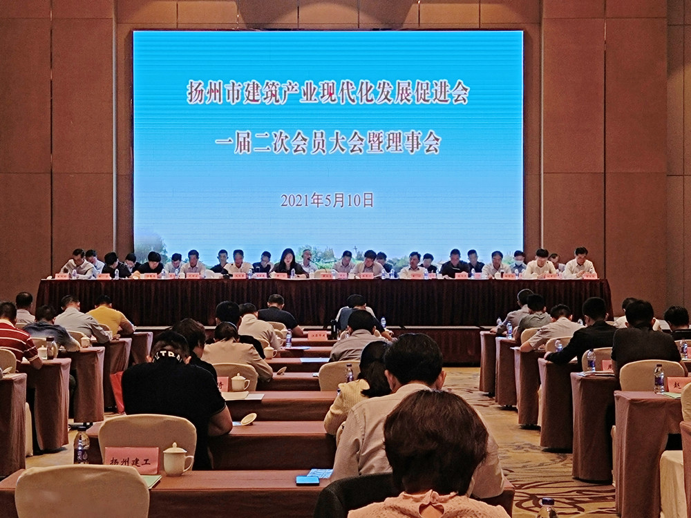 揚(yáng)建網(wǎng)訊 5月10日,揚(yáng)州市建筑產(chǎn)業(yè)現(xiàn)代化發(fā)展促進(jìn)會(huì)一屆二次會(huì)員大會(huì)在揚(yáng)州市皇冠假日酒店召開(kāi),我集團(tuán)梁云彪、鄒厚存、耿杰等領(lǐng)導(dǎo)出席了會(huì)議。