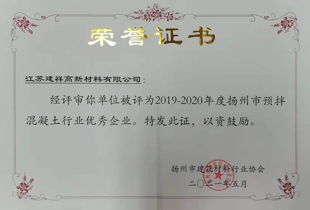 建祥華誠(chéng)蟬聯(lián)揚(yáng)州市建材行業(yè)優(yōu)秀企業(yè)