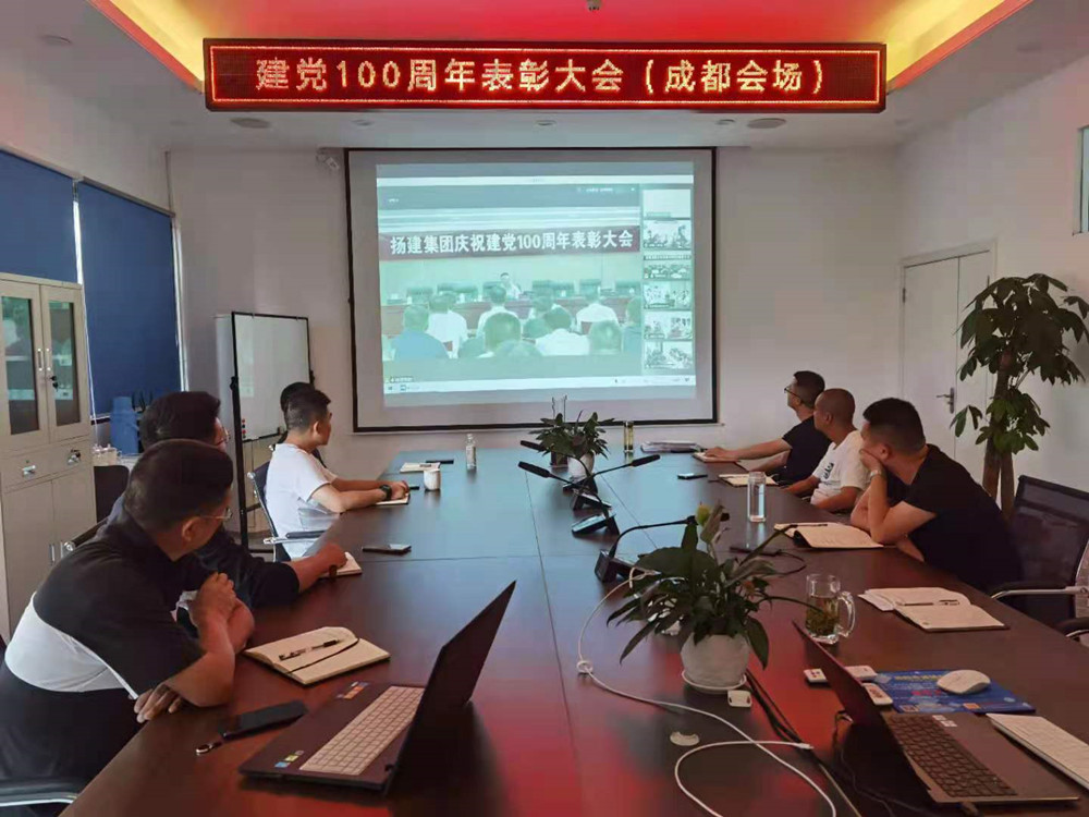 揚(yáng)建網(wǎng)訊 6月26日下午三點(diǎn),集團(tuán)黨委在文昌辦公區(qū)14樓會(huì)議室召開了慶祝建黨100周年表彰大會(huì)。會(huì)議由集團(tuán)黨委副書記張振新同志主持,集團(tuán)在揚(yáng)領(lǐng)導(dǎo)、總部中層管理人員、在揚(yáng)基層單位黨政負(fù)責(zé)人、黨員代表參加。上海、新疆、北方、深圳、珠海、海南等外埠?jiǎn)挝煌絽⒓恿艘曨l會(huì)議。