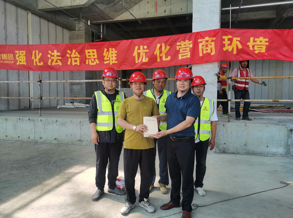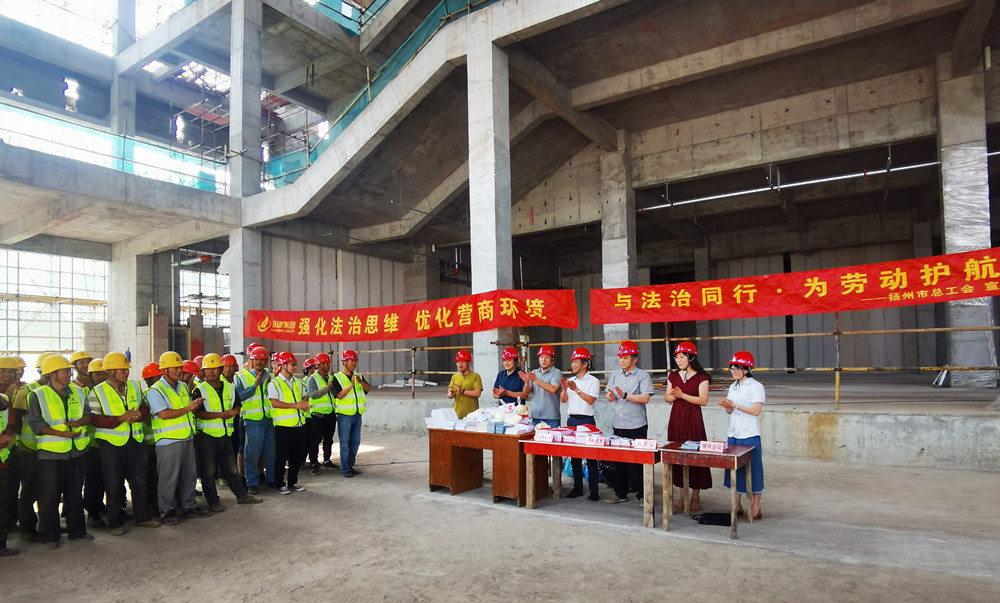 揚建網(wǎng)訊 為發(fā)揮黨員先鋒模范作用和黨員領(lǐng)導(dǎo)干部表率作用,6月24日下午,市建管處聯(lián)合市總工會、市司法局、市勞動監(jiān)察在我集團揚州高等職業(yè)技術(shù)學(xué)校項目現(xiàn)場開展“我為群眾辦實事”黨員志愿服務(wù)活動。市建管處吳建華主席及其他領(lǐng)導(dǎo)、市總工會、市司法局、市勞動監(jiān)察相關(guān)領(lǐng)導(dǎo)、我集團公司副總經(jīng)理劉海斌、企業(yè)管理部部長何平等40余人參與活動。