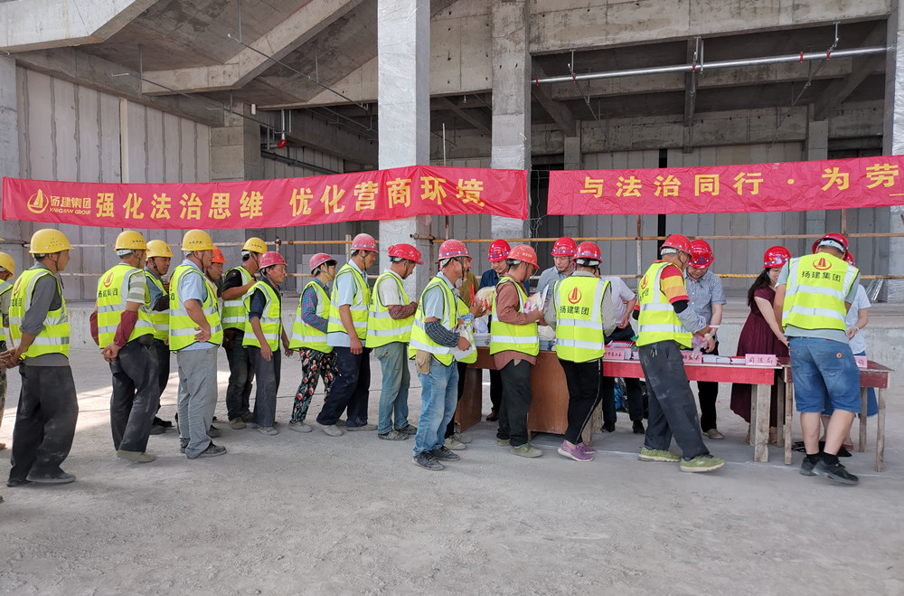 活動開始,市司法局領(lǐng)導(dǎo)詢問工人是否有法律方面的問題需要咨詢;并介紹了農(nóng)民工兄弟維權(quán)合法渠道。接著,何平部長代表我集團對政府相關(guān)部門給予集團和農(nóng)民工的關(guān)心關(guān)愛表示感謝,對辛勤奮斗在施工一線的工人兄弟表達了慰問。活動中,市相關(guān)部門領(lǐng)導(dǎo)給現(xiàn)場工人發(fā)放了《勞動法》《保障農(nóng)民工工資支付條例》《工傷保險條例》《中國人民共和國民法典》等法律法規(guī)宣傳冊,并送去夏季防護用品,切實為工人謀實惠、辦實事,受到現(xiàn)場工人一致好評。