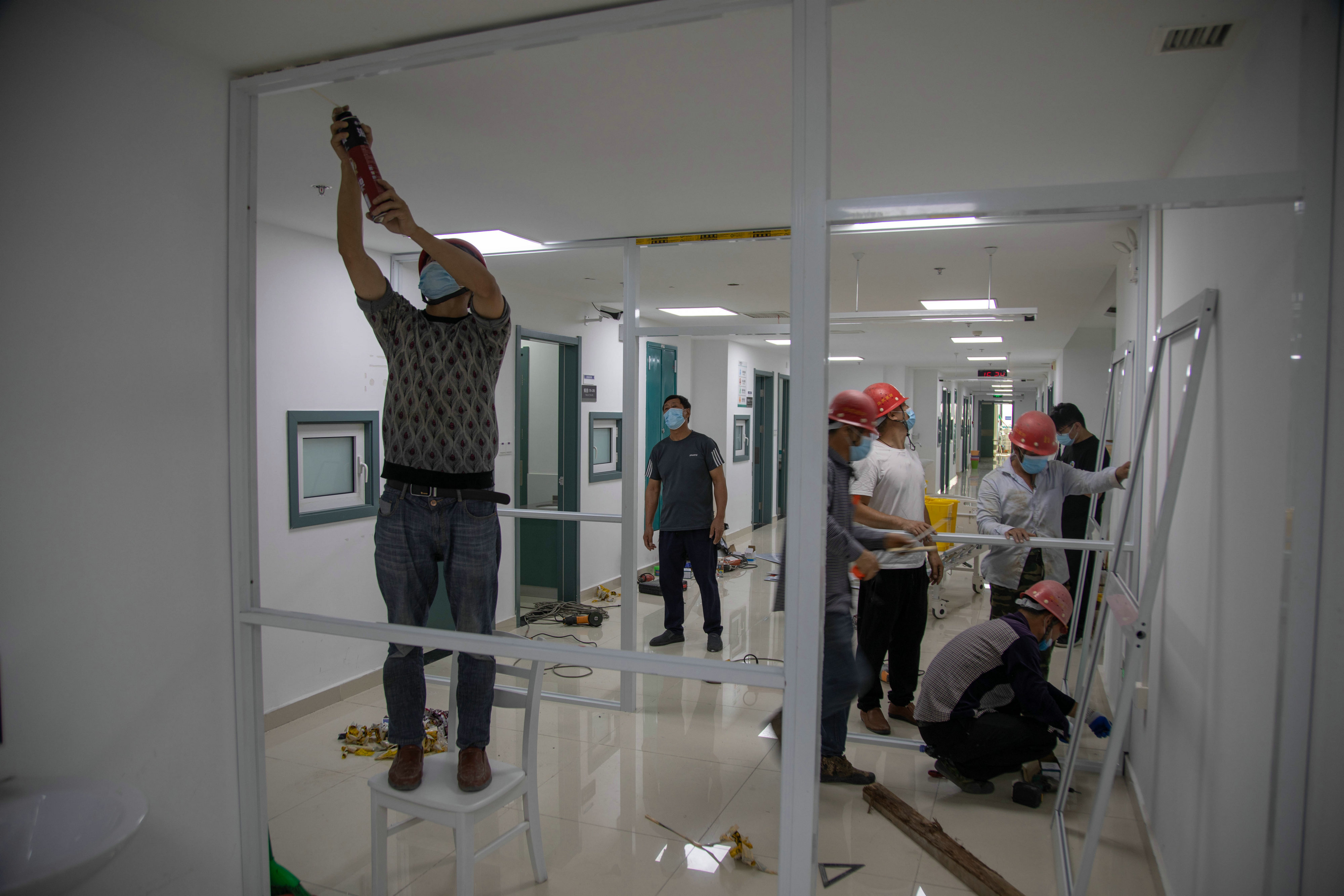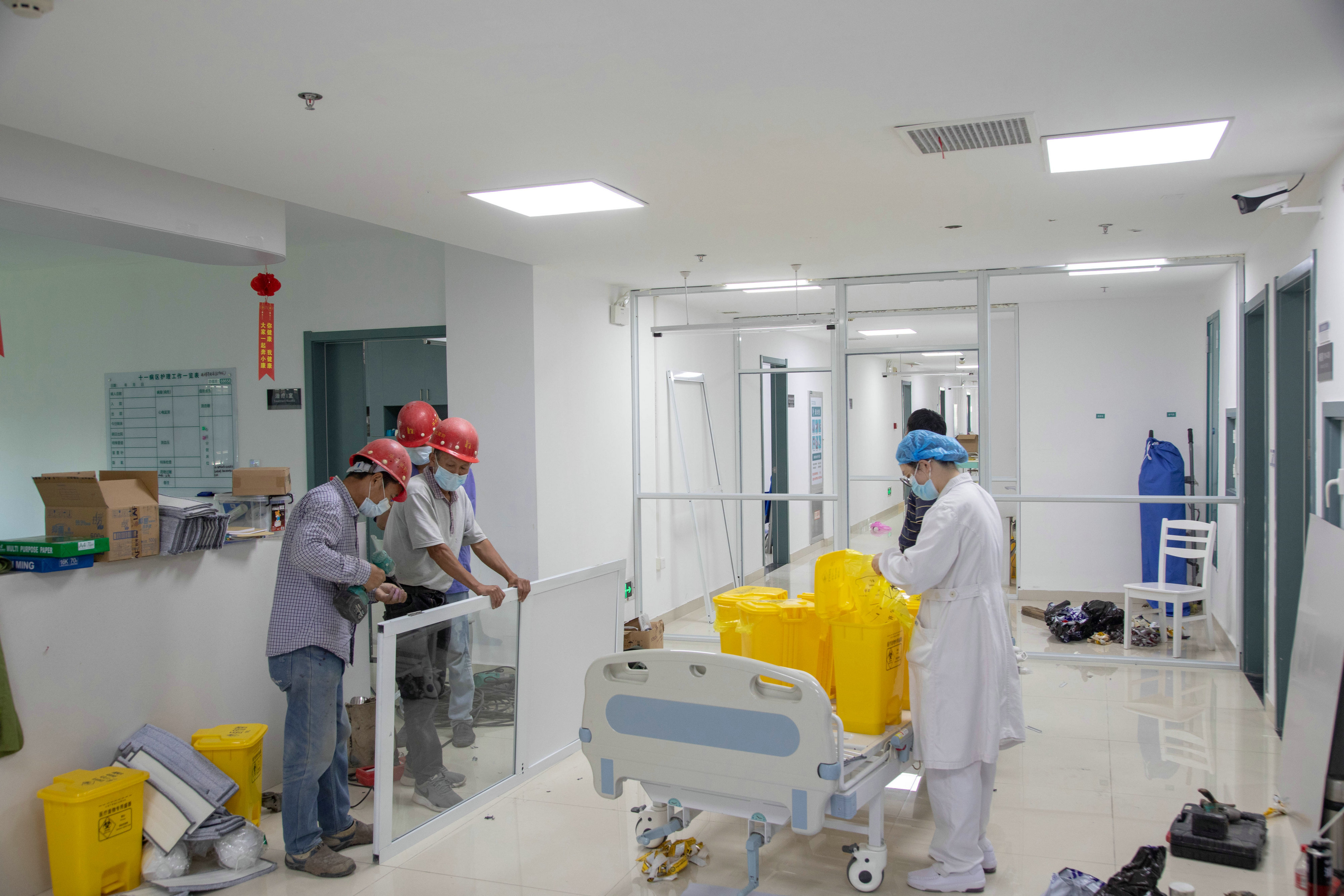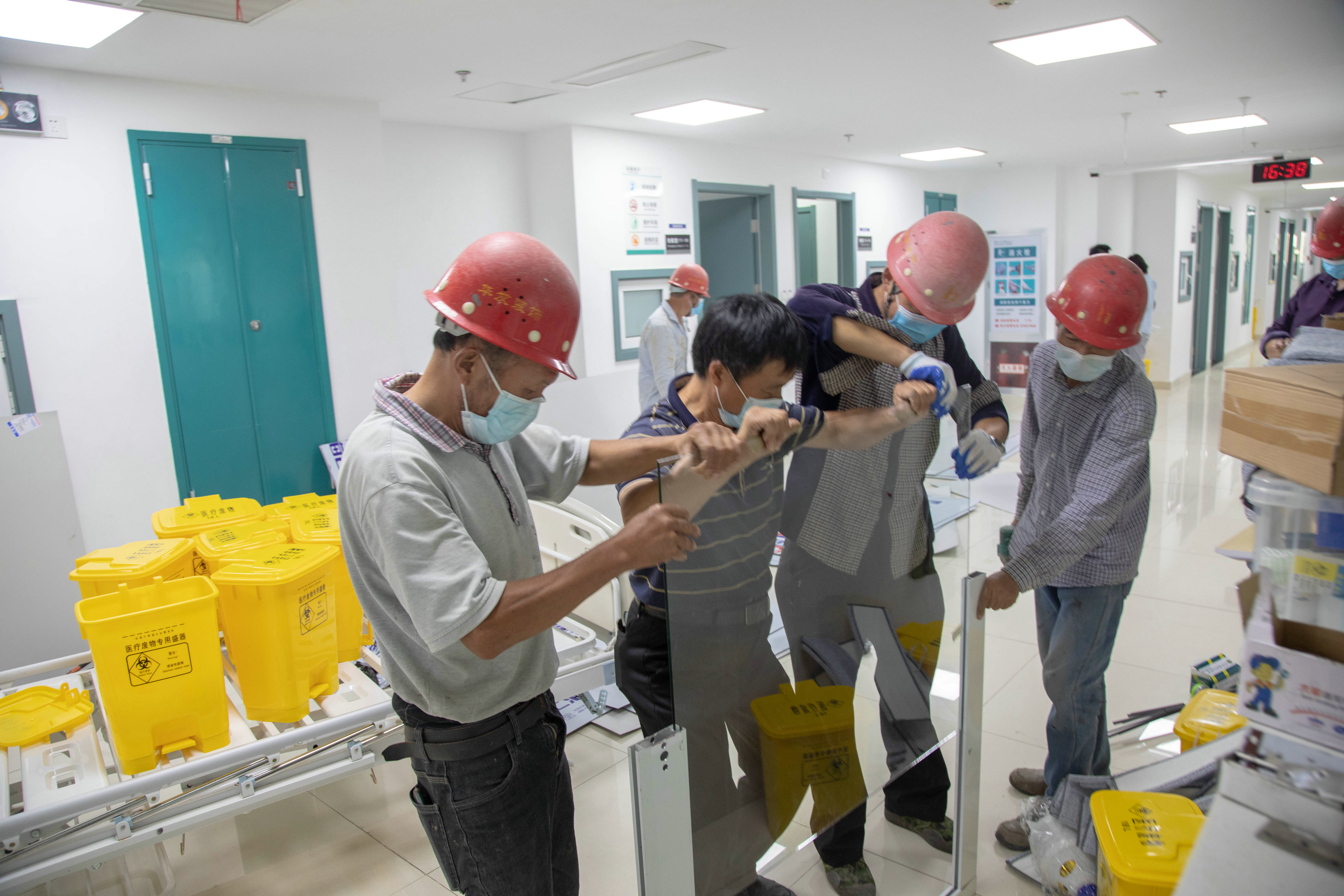 就在4日晚8點(diǎn)即將完工時(shí),這時(shí)院方又臨時(shí)下達(dá)了新的工作任務(wù)——再加兩個(gè)隔斷和幾十米的護(hù)欄安裝,天亮前必須完成。王學(xué)金同志隨即通知華發(fā)基地連夜加急趕工生產(chǎn),凌晨12點(diǎn)制作完成后立即拖回材料現(xiàn)場(chǎng)安裝。經(jīng)過(guò)42個(gè)小時(shí)的通宵奮戰(zhàn),終于在5日早晨完成了全部任務(wù)。完成交付任務(wù)時(shí),駐扎在市三院的國(guó)家衛(wèi)計(jì)委專家組對(duì)施工質(zhì)量給予了肯定。任務(wù)完成后,施工人員們并沒(méi)有立即回家休息,而是原地待命,防止還有其他突發(fā)應(yīng)急任務(wù)。