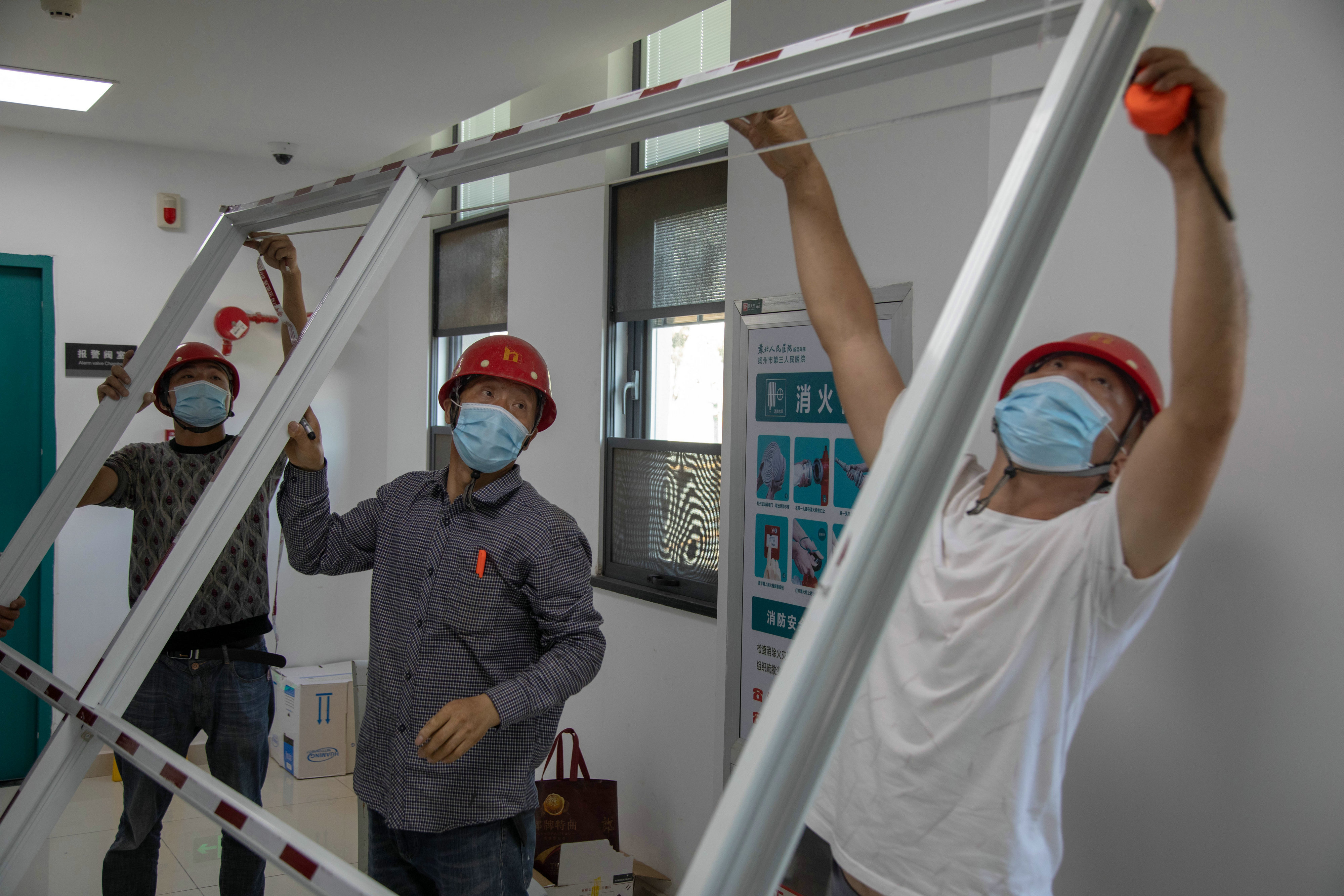 在疫情開(kāi)始時(shí),公司領(lǐng)導(dǎo)層就下達(dá)了做好工地留守人員的管理以應(yīng)對(duì)政府突擊工程的要求。因此,在8月2日接到廣陵區(qū)疫情防控指揮部的通知后,第一項(xiàng)目管理中心唐亞軍迅速組織動(dòng)員圖書(shū)館項(xiàng)目中的留揚(yáng)人員到位,集結(jié)十幾名工人第一時(shí)間到達(dá)施工現(xiàn)場(chǎng),按照上級(jí)防疫指示要求,對(duì)政府征用為定點(diǎn)隔離酒店的華師大初中、錦江之星、桔子酒店、漢庭、和頤酒店、皇冠假日酒店進(jìn)行隔斷封閉門(mén)窗施工,主要針對(duì)相關(guān)通道、門(mén)窗進(jìn)行封堵,確保工作人員和隔離人員區(qū)域之間留有消毒區(qū)(緩沖區(qū)),避免發(fā)生醫(yī)護(hù)感染。經(jīng)過(guò)48小時(shí)的連夜奮戰(zhàn),施工人員圓滿完成交付任務(wù)。