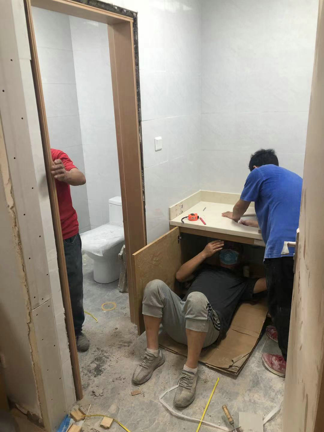 安裝項(xiàng)目部鄒宇等員工此次主要負(fù)責(zé)84間公寓的水電施工,包含燈具、潔具、開(kāi)關(guān)插座及消防系統(tǒng)的安裝。因疫情封鎖,現(xiàn)場(chǎng)所缺的開(kāi)關(guān)插座無(wú)法送至現(xiàn)場(chǎng),項(xiàng)目部張?chǎng)螏еㄐ凶C開(kāi)車(chē)去接材料商,及時(shí)將材料取回現(xiàn)場(chǎng)。而此時(shí)張?chǎng)我粴q多的孩子還在生病住院,但他仍堅(jiān)持到崗,并住在施工現(xiàn)場(chǎng)與大家一起日夜奮戰(zhàn)。