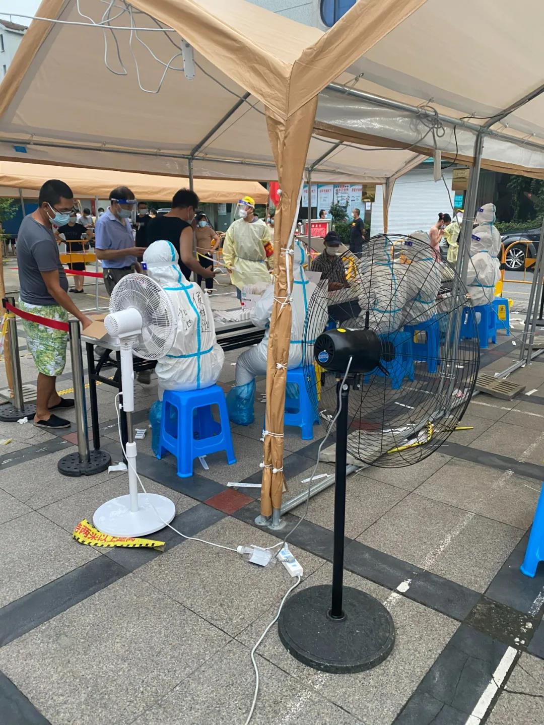 疫情發(fā)生之后,揚(yáng)建小貸立即要求全體員工不得隨便外出,呆在家里就是貢獻(xiàn),居家辦公積極解決處理客戶問題,同時(shí)要求每一位員工每天參加新冠核酸檢測,統(tǒng)計(jì)匯報(bào)檢測情況和檢測結(jié)果。為了支持全市抗疫大局,依據(jù)志愿原則,符合條件的員工成立疫情志愿者服務(wù)小組。8月12日志愿者小組統(tǒng)一服從開發(fā)區(qū)財(cái)政局指揮,吳騫、黃河、胡建林三位員工在新城花園小區(qū)擔(dān)任核酸檢測志愿者,為核酸檢測試管做好送箱、封箱、收箱工作,以及醫(yī)務(wù)人員的醫(yī)療物品發(fā)放和補(bǔ)充,維持核酸檢測現(xiàn)場秩序,引導(dǎo)小區(qū)檢測人員快速且安全的完成檢測。李石柱依據(jù)小區(qū)要求,在開發(fā)區(qū)金峰社區(qū)寶龍小區(qū)擔(dān)任志愿者,協(xié)助社區(qū)開展工作。天一亮,志愿者就奔赴各自崗位,等核酸檢測完畢,已經(jīng)是晚上九十點(diǎn)鐘。一天中,他們的衣服濕了干,干了濕。他們忙碌的身影,樹立了揚(yáng)建小貸人的無私奉獻(xiàn)精神。