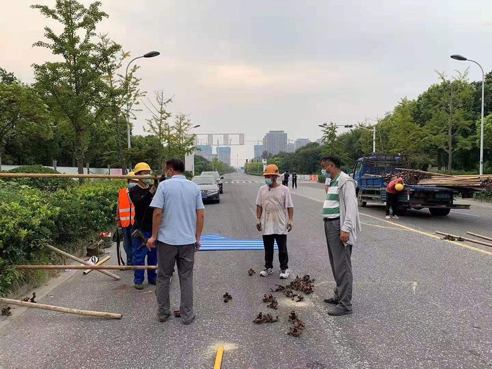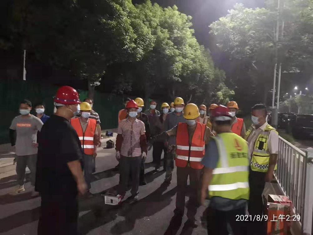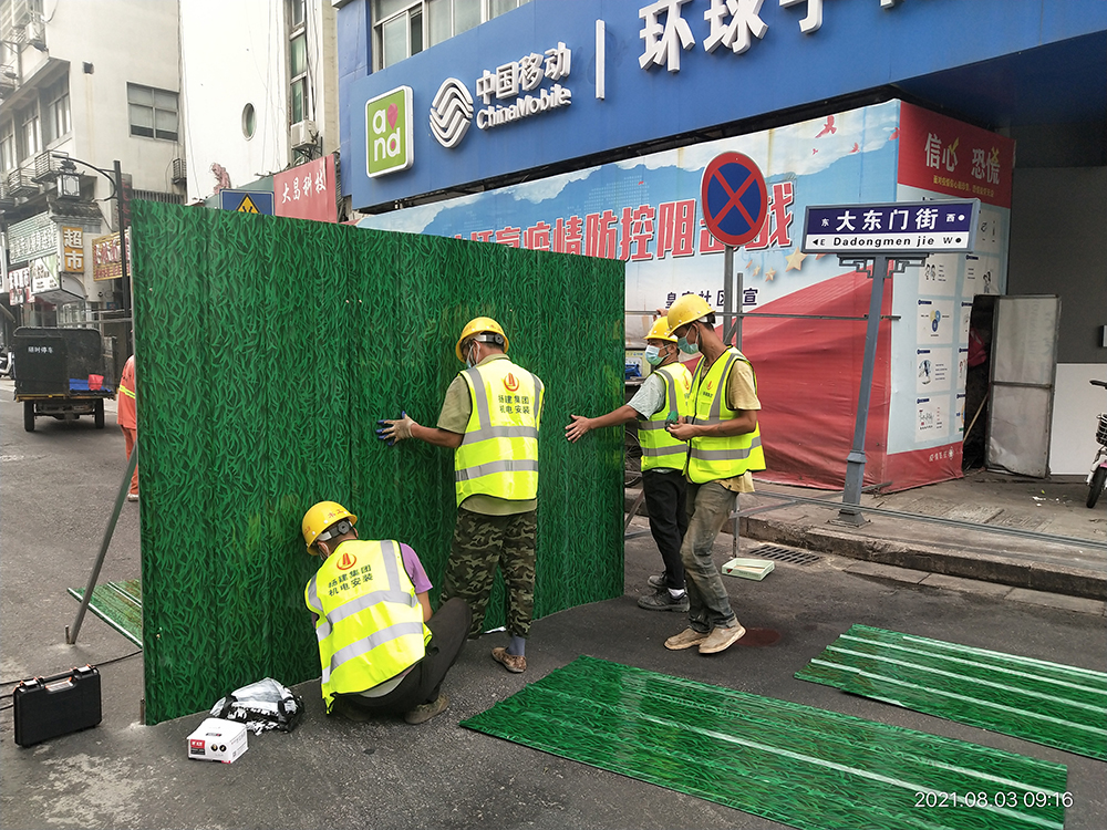 8月8日集團再次指示,三公司配合廣陵區(qū)政府對高風(fēng)險地區(qū)灣頭鎮(zhèn)聯(lián)合村所有道路進(jìn)行圍擋封閉。由于當(dāng)時道路封閉,人員和材料進(jìn)場困難,分公司領(lǐng)導(dǎo)高度重視,迅速進(jìn)行多方協(xié)調(diào),調(diào)配了各種運輸工具和施工材料進(jìn)場;并由三公司抗疫領(lǐng)導(dǎo)小組成員王剛、張其虎、周兵、吉習(xí)法、徐華昌、胡金榮率領(lǐng)高職校和環(huán)保公司20余人火速趕到任務(wù)現(xiàn)場。突擊隊員在做好個人防護(hù)的同時,加班加點,施工作業(yè)到凌晨三點,為的就是盡快將抗疫任務(wù)完成,讓社會放心,讓群眾安心。經(jīng)過了兩天一夜的努力,順利的在9日下午完成了對聯(lián)合村所有道路的封閉施工,累計完成了約2000米的圍擋。這次任務(wù)充分展現(xiàn)了不畏艱險、敢于擔(dān)當(dāng)、樂于奉獻(xiàn)的揚建鐵軍形象,得到了人民群眾和廣陵區(qū)領(lǐng)導(dǎo)及相關(guān)單位的高度贊揚。