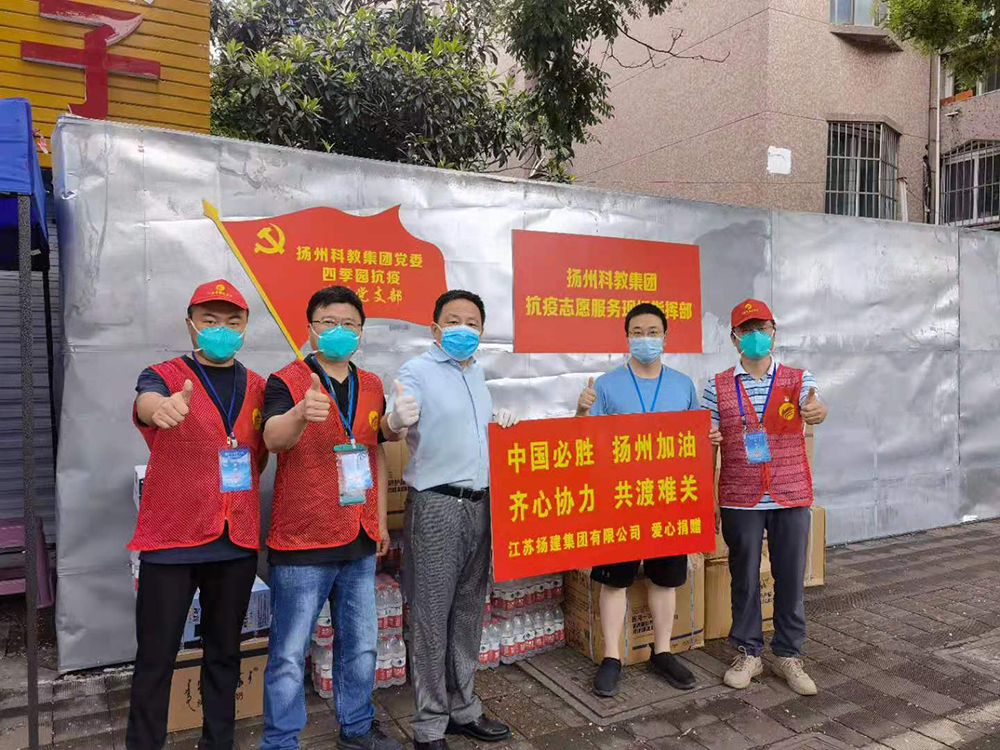 又訊: 8月12日,集團公司副總經(jīng)理、三公司經(jīng)理劉海斌代表集團攜1500套防護(hù)服、5000個KN95口罩、5000個面罩,數(shù)百箱礦泉水、紅牛、八寶粥等,赴市科教集團所執(zhí)行的四季園小區(qū)和南門街小區(qū)以及市運河文投集團所執(zhí)行的揚汽宿舍點慰問黨員志愿服務(wù)隊,對他們夜以繼日的付出表示崇高的敬意??平碳瘓F黨委副書記戴壯明、副總經(jīng)理朱曉東、段如旭和運河文投集團黨委副書記、總經(jīng)理朱宏兵參加上述活動。他們對揚建集團及時的愛心捐助表示了衷心感謝,并共同表達(dá)了齊心協(xié)力、眾志成城早日戰(zhàn)勝疫情的信心與決心。