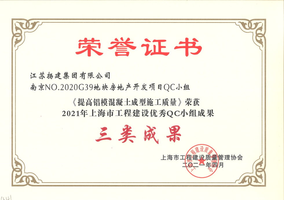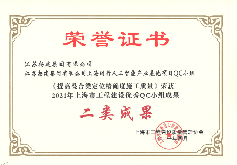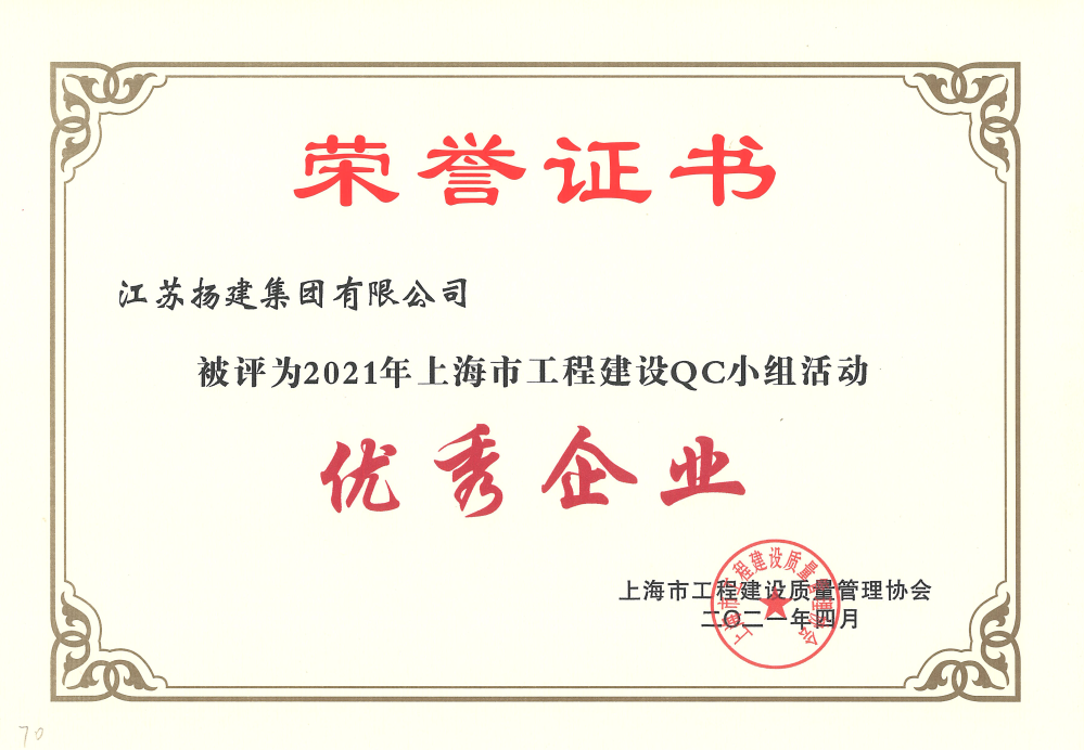 揚建網(wǎng)訊 日前在上海結(jié)束的2021年度上海市工程建設優(yōu)秀QC小組成果評審會上,在通過江蘇省滬辦建管處層層選拔、推薦申報后,經(jīng)上海市工程建設質(zhì)量管理協(xié)會質(zhì)量審定委員會審定,江蘇揚建集團有限公司再次獲評上海市工程建設QC小組活動優(yōu)秀企業(yè)。