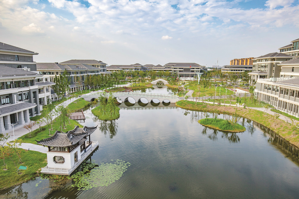 江蘇旅游職業(yè)學(xué)院一期項(xiàng)目由揚(yáng)州臨港教育發(fā)展有限公司投資建設(shè),是集團(tuán)公司總承包的第一個(gè)PPP項(xiàng)目,由項(xiàng)目管理一公司具體實(shí)施,環(huán)保公司、華發(fā)公司、樁基公司參建??偨ㄖ娣e20.28萬㎡,框架結(jié)構(gòu),2016年12月15日開工,2018年12月20日備案,工程總造價(jià)9.37億元,工程首創(chuàng)性地提出了開放式校園,以5A級(jí)景區(qū)標(biāo)準(zhǔn)建設(shè)。設(shè)計(jì)注重多元化融合,打造理念最新、環(huán)境最美、文化最優(yōu)的旅游大學(xué)。規(guī)劃了一軸(東西中軸),兩片(南片教學(xué)區(qū)與北片生活區(qū)),一帶(濱水休閑帶)的空間格局。創(chuàng)新性采用產(chǎn)教研游融合,教學(xué)功能和研發(fā)功能同步發(fā)展,實(shí)現(xiàn)人與自然、社區(qū)、校園和諧發(fā)展。本工程還獲得中施協(xié)工程建設(shè)項(xiàng)目設(shè)計(jì)水平評(píng)價(jià)三等成果、二星級(jí)綠色建筑設(shè)計(jì)標(biāo)識(shí)證書、江蘇省城鄉(xiāng)建設(shè)系統(tǒng)優(yōu)秀勘察設(shè)計(jì)三等獎(jiǎng),江蘇省優(yōu)質(zhì)工程獎(jiǎng)“揚(yáng)子杯”、中國(guó)建筑工程裝飾獎(jiǎng)(裝飾工程)、江蘇省建筑施工標(biāo)準(zhǔn)化星級(jí)工地;江蘇省省級(jí)工法3項(xiàng)、授權(quán)發(fā)明和實(shí)用新型專利各1項(xiàng)、江蘇省QC質(zhì)量成果獎(jiǎng)2項(xiàng)。