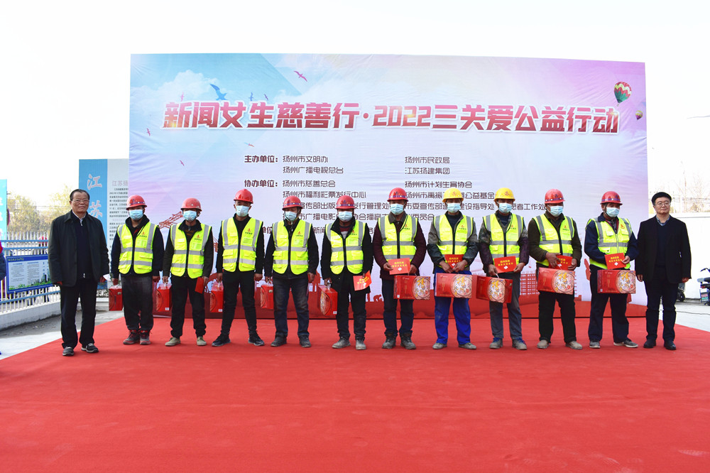 揚建網(wǎng)訊 12月22日上午,由揚州市文明辦、揚州市民政局、揚州廣電總臺和揚建集團聯(lián)合主辦的“新聞女生慈善行·2022三關愛公益行動”在技師學院新校區(qū)一標段項目順利舉行。揚州市慈善總會會長洪錦華、揚建集團理事會主席曹德榮、揚州市民政局副局長錢建忠、揚州市福利彩票發(fā)行中心副主任焦寶泉、揚州東方醫(yī)院黨支部書記高建廣、邗江區(qū)計劃生育協(xié)會副會長孔祥龍等出席本次活動。