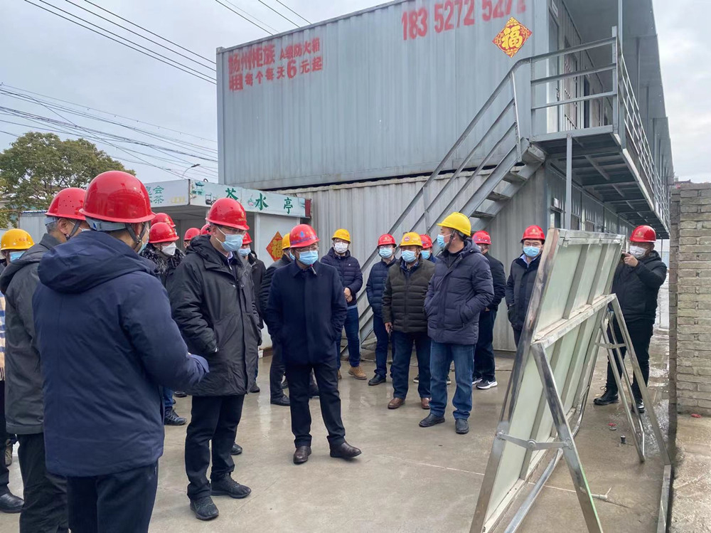 揚(yáng)建網(wǎng)訊 2月8日上午,揚(yáng)州市市委常委、副市長趙慶紅帶領(lǐng)市住建局、區(qū)建設(shè)局等職能部門一行對(duì)一公司歐美工業(yè)園C地塊EPC工程總承包工地進(jìn)行了檢查指導(dǎo),集團(tuán)公司副總經(jīng)理丁傳武、陳寶中陪同參與檢查。