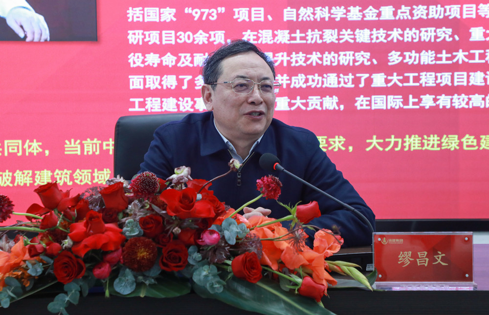 隨后,繆昌文院士作了指導(dǎo)講話。他強調(diào)要重視工程質(zhì)量、智能建造、科技是第一生產(chǎn)力、培養(yǎng)一流人才,提供一流的科研條件、產(chǎn)生一流的成果、創(chuàng)造一流的效益;希望揚建大力推進綠色、智慧、創(chuàng)新發(fā)展,研究自流平、自密實混凝土、加強智能管理等;在公司內(nèi)部選拔專業(yè)型人才進一步培養(yǎng)碩士、博士團隊,壯大人才隊伍,為企業(yè)發(fā)展打下堅實的基礎(chǔ);本著人無我有、人有我優(yōu)的精神,促進員工政治素養(yǎng)和業(yè)務(wù)素養(yǎng)同步發(fā)展。