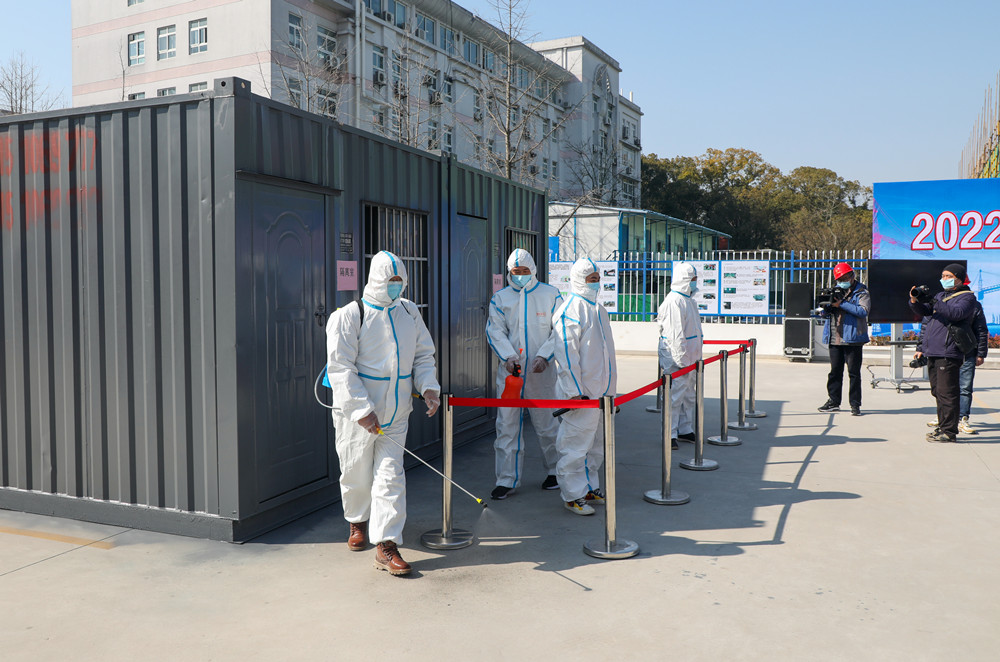 揚(yáng)建網(wǎng)訊 為貫徹落實(shí)省、市新冠疫情防控最新要求,抓細(xì)抓實(shí)建筑工地各項(xiàng)疫情防控措施,提升疫情應(yīng)急處置能力,2月25日,市住建局在我集團(tuán)承建的揚(yáng)州大學(xué)生命科學(xué)大樓項(xiàng)目舉行了全市建筑施工疫情防控應(yīng)急演練觀摩會(huì)。市住建局副局長(zhǎng)薛炳寬、蘇明清、揚(yáng)州大學(xué)基建處副處長(zhǎng)李家鵬、集團(tuán)公司副總經(jīng)理丁傳武參加了本次應(yīng)急演練觀摩會(huì),各縣(市、區(qū))住建局、全市建筑業(yè)相關(guān)企業(yè)以及在建項(xiàng)目人員通過網(wǎng)絡(luò)直播觀看了此次演練。