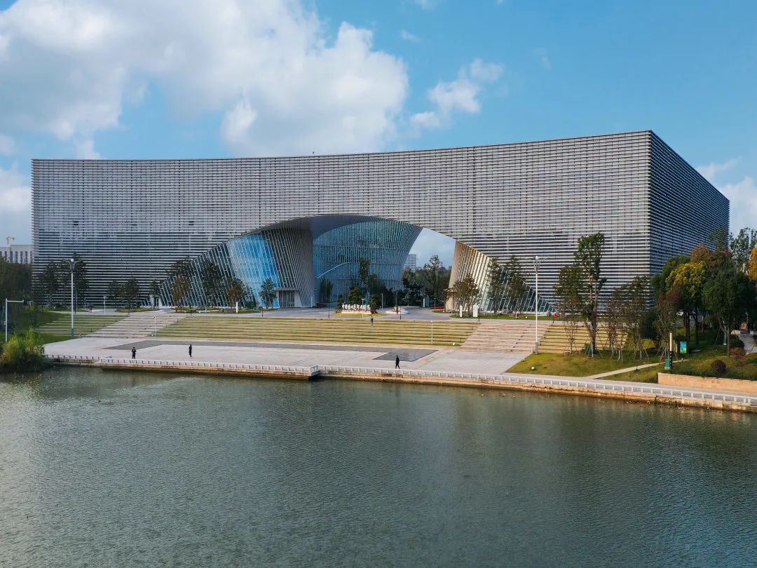運河大劇院位于揚州市環(huán)湖路西側(cè)、明月湖北側(cè),是揚州地區(qū)首個滿足各類演出需要的甲等劇場。工程總建筑面積80892.92平方米,總造價4.5億元,結(jié)構(gòu)形式包括勁鋼結(jié)構(gòu)、大跨度H鋼桁架結(jié)構(gòu)、大懸挑管桁架結(jié)構(gòu)、室內(nèi)懸掛結(jié)構(gòu),最大跨度為31.8米,總用鋼量約4000噸。