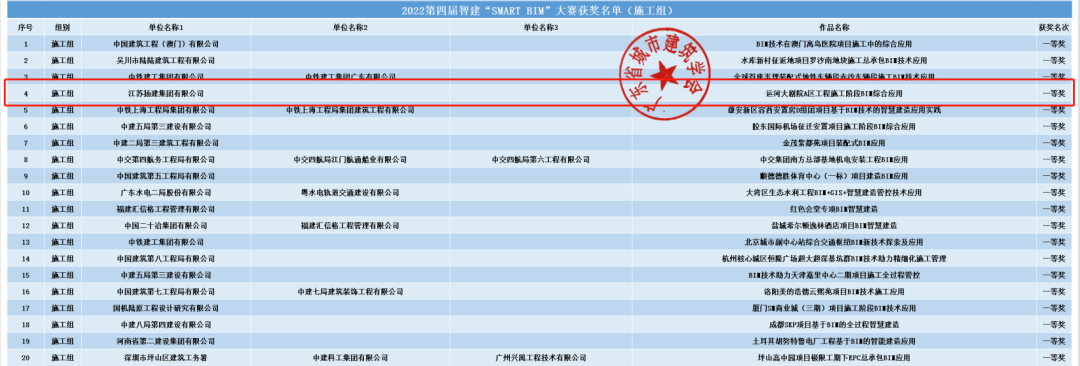 經(jīng)過6月至7月的初賽、復(fù)賽答辯,7月6日,揚建集團“運河大劇院A區(qū)BIM應(yīng)用”在800多個同行作品中脫穎而出,名列施工組第4名,喜獲本次大賽一等獎。