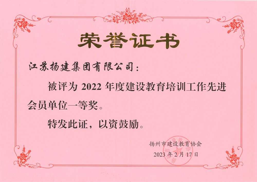 揚(yáng)建集團(tuán)獲評(píng)市建設(shè)教育協(xié)會(huì)先進(jìn)會(huì)員單位一等獎(jiǎng)