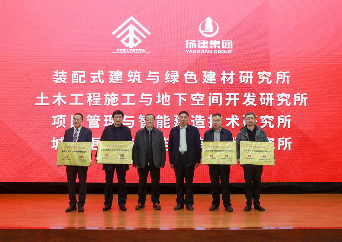 在一陣陣熱烈的掌聲中,繆昌文、劉加平、李政、徐學(xué)軍、王宏、康往東共同開啟了江蘇綠色建造產(chǎn)業(yè)研究院掛牌儀式。隨后,江蘇綠色建造產(chǎn)業(yè)研究院院長孟少平、江蘇揚建集團理事會主席曹德榮共同為裝配式建筑與綠色建材研究所、土木工程施工與地下空間開發(fā)研究所、項目管理與智能建造技術(shù)研究所、城市更新與節(jié)能改造技術(shù)研究所授牌。