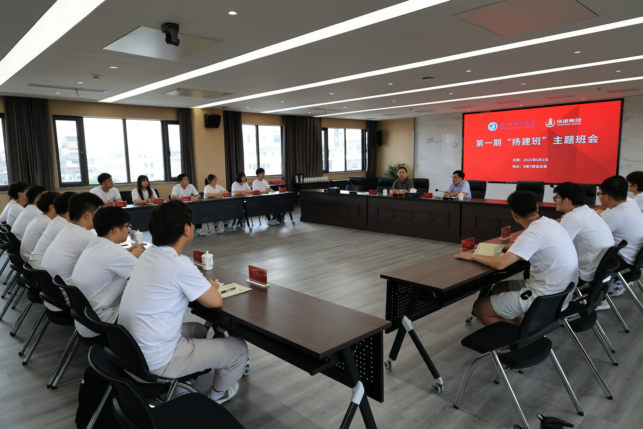 開班儀式結(jié)束后,校企領(lǐng)導、老師和學員分別召開了第一期“揚建班”校企座談會和主題班會。