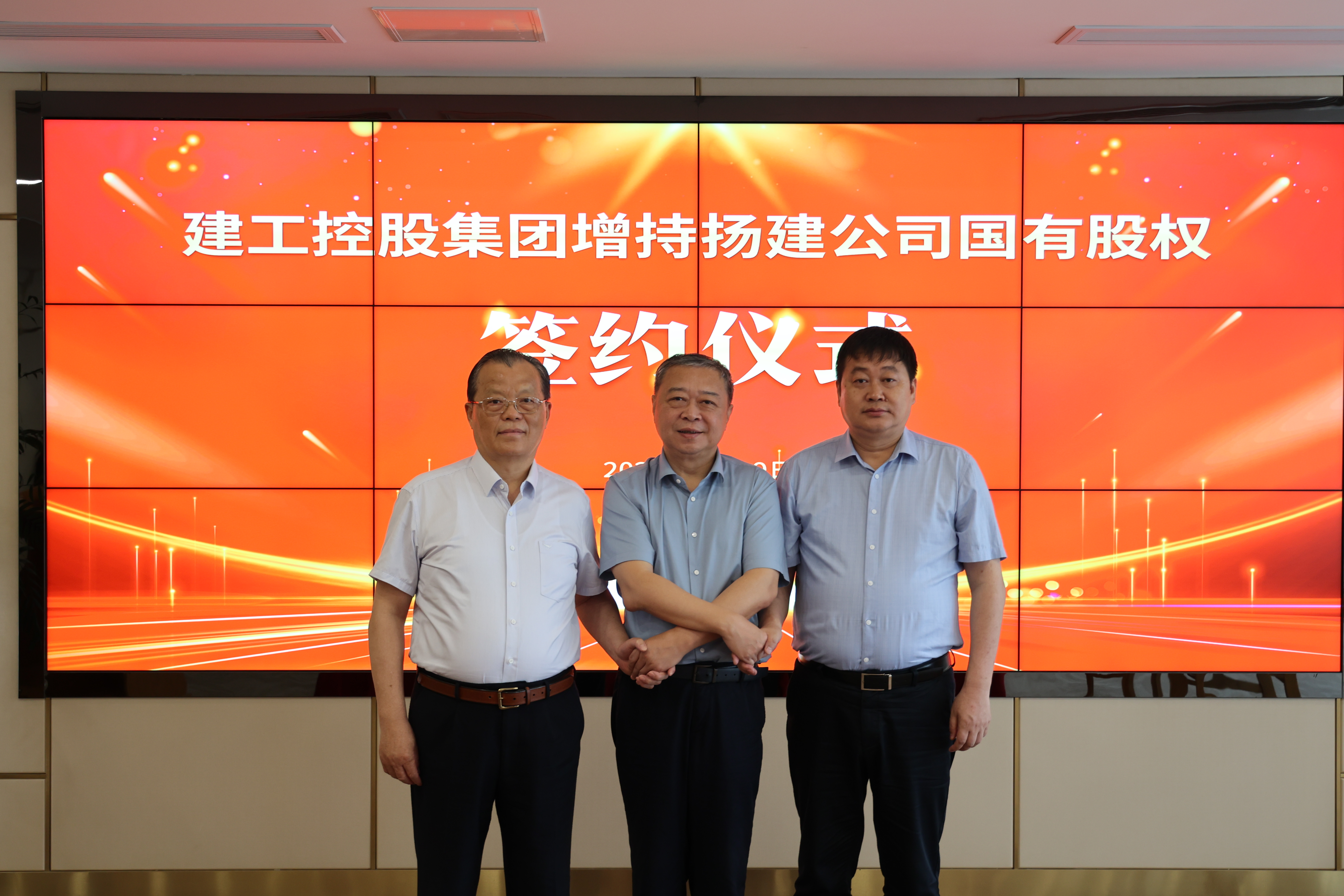 在市國(guó)資委授權(quán)代表的見證下,王宏、康往東、曹德榮分別代表建工控股集團(tuán)、揚(yáng)建公司、華融公司及自然人股東,正式簽署《增資擴(kuò)股協(xié)議書》。本次增持完成以后,江蘇揚(yáng)建集團(tuán)有限公司注冊(cè)資本金將從5億元增加至7億元,其中揚(yáng)州建工控股集團(tuán)有限公司持股比例42.86%為第一大股東,揚(yáng)建重新成為國(guó)有控股企業(yè)。