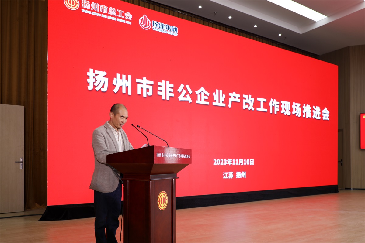 揚(yáng)州市非公企業(yè)產(chǎn)改工作現(xiàn)場(chǎng)推進(jìn)會(huì)在揚(yáng)建集團(tuán)舉行