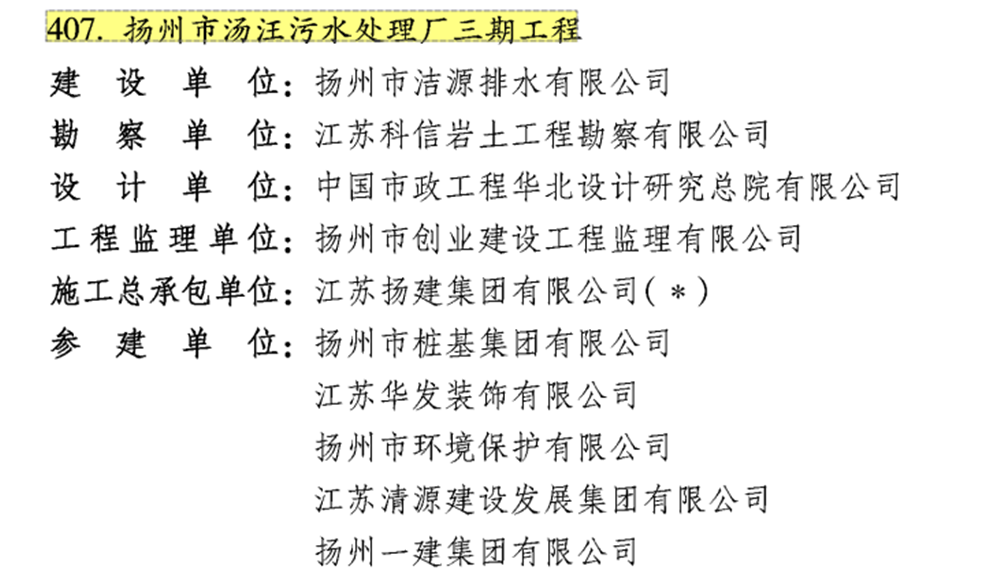 揚(yáng)建集團(tuán)湯汪污水處理廠三期工程榮獲國家優(yōu)質(zhì)工程獎(jiǎng)