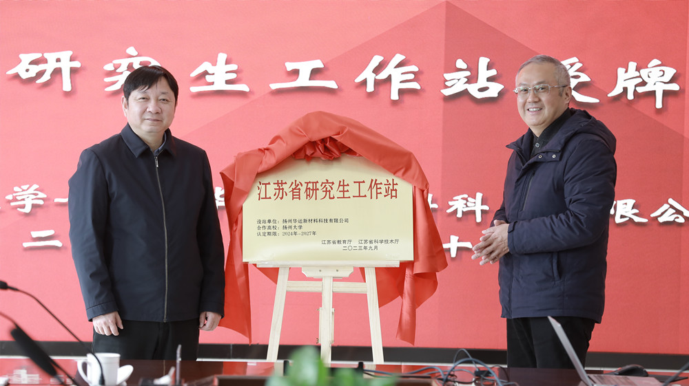 揚建網(wǎng)訊 為促進產(chǎn)教融合,推動科技創(chuàng)新和人才培養(yǎng),揚州大學(xué)與揚建集團華運新材料科技有限公司合作建立了江蘇省研究生工作站。12月13日上午,揚大與華運公司共同舉行了工作站的揭牌儀式,揚州大學(xué)研究生院常務(wù)副院長薛懷國、我集團黨委副書記呂國兵為“江蘇省研究生工作站”揭牌,揚州大學(xué)建工學(xué)院院長康愛紅、研究生院副院長王莉、揚州大學(xué)楊鼎宜教授團隊及骨干教師、建祥公司經(jīng)理賈向鋒和相關(guān)經(jīng)理室成員參加了揭牌儀式。