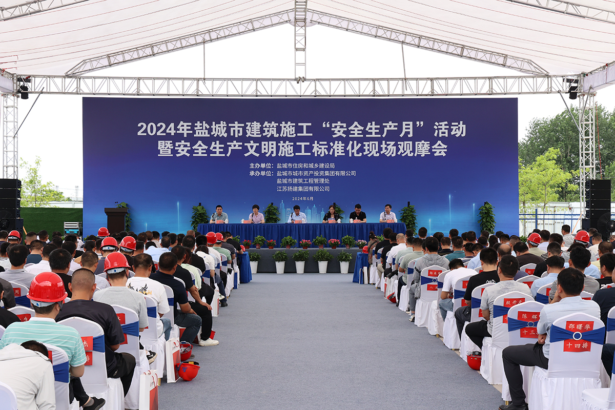 揚(yáng)建網(wǎng)訊 6月25日,鹽城市住房和城鄉(xiāng)建設(shè)局在江蘇揚(yáng)建集團(tuán)有限公司承建的鹽城市第四人民醫(yī)院異地新建工程召開了2024年度鹽城市建筑施工“安全生產(chǎn)月”活動(dòng)暨安全生產(chǎn)文明施工標(biāo)準(zhǔn)化現(xiàn)場觀摩會(huì)。鹽城市住建局、鹽城市城投集團(tuán)、鹽城市各區(qū)縣住建局等各級領(lǐng)導(dǎo),以及全市各建筑監(jiān)督機(jī)構(gòu)、各在建項(xiàng)目主要負(fù)責(zé)人共400余人參加了觀摩。