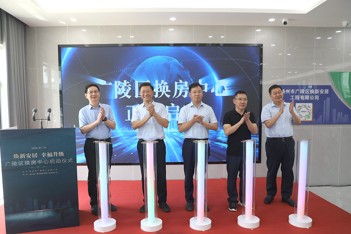 揚建網(wǎng)訊 7月24日上午,廣陵區(qū)換房中心啟動儀式在揚建集團福運門辦公區(qū)(揚州市廣陵區(qū)南通東路80號)隆重舉行。揚州市住房和城鄉(xiāng)建設局黨委書記、局長徐安朝,廣陵區(qū)委副書記、區(qū)長郎俊,揚州市住房和城鄉(xiāng)建設局黨委委員、副局長朱元,江蘇揚建集團有限公司黨委書記、董事長康往東出席,廣陵區(qū)委常委、副區(qū)長王兵,江蘇揚建集團有限公司總經(jīng)理鄒厚存出席并致辭,市住建局、自然資源和規(guī)劃分局、廣陵經(jīng)開區(qū)、廣陵建工、相關街道社區(qū)負責人以及廣陵區(qū)3大國有房企負責人等領導齊聚啟動儀式現(xiàn)場,共同見證這一創(chuàng)新時刻。